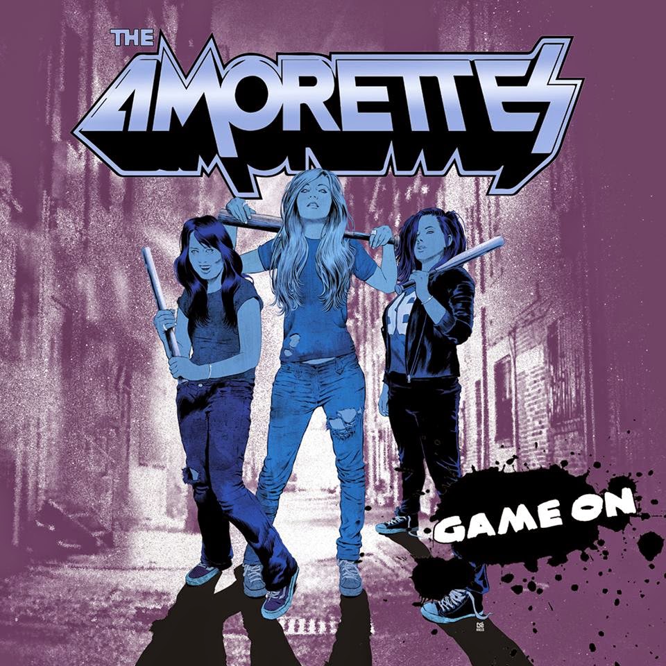 In the last few weeks I’ve been listening to the blistering tunes that emit from Game On, the second album by the entirely too awesome trio of Gill Montgomery (vocals, guitars) and sisters Hannah (drums, backing vocals) and Heather McKay (bass, backing vocals), collectively known as The Amorettes.