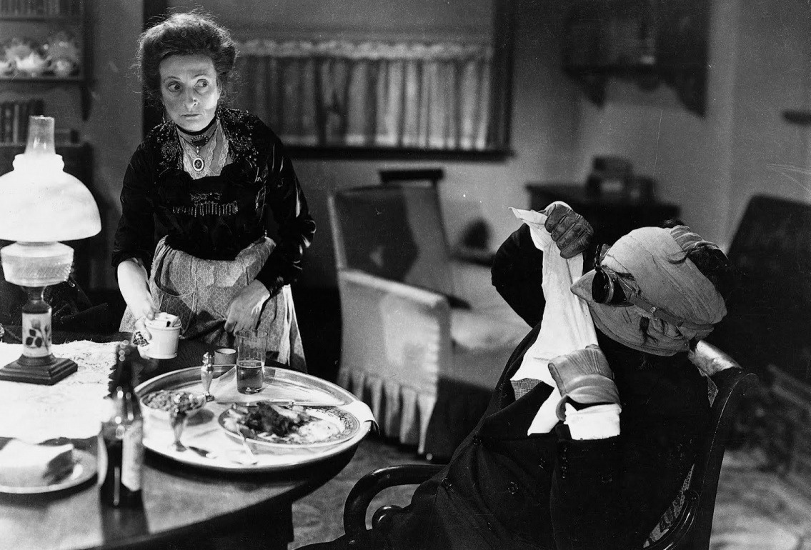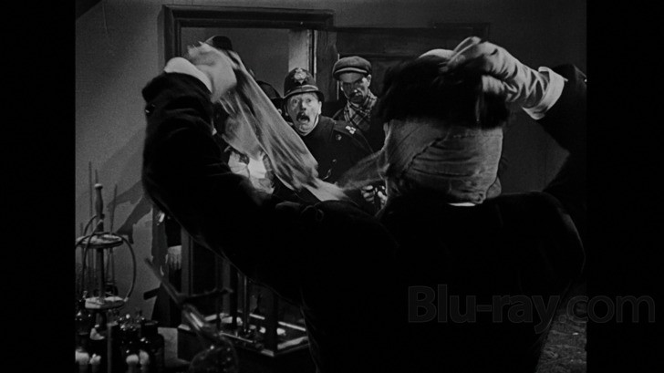 It is soon revealed that Griffin is completely invisible. He has gone into seclusion in order to find a way to return to a visible state. Unknown to Griffin, one of the items that he used in his original experiments is monocane, a drug that slowly draws him into madness. Soon enough, Griffin becomes enraged with the constant interruptions of the innkeeper and his wife (the rather humorous duo of Forrester Harvey and Una O’Connor) and he attacks them. This brings the local police into the picture and Griffin removes his clothing and bandages and rages through the town in order to escape.