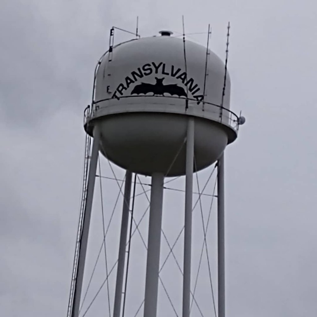 When we finally arrived in Transylvania, we saw the general store (which appeared to be closed for the day), the famous water tower with a giant bat on two sides, the Transylvania Post Office, and the permanently closed and abandoned Transylvania Elementary School. The town is surrounded by corn and cotton fields on all sides and the highways that lead into it (65 and 581) are dotted with prehistoric mounds built by the indigenous people that lived and/or traveled through the area. Some of these mounds predate Stonehenge (3000 BC) by as many as an estimated five hundred years. Many of these mounds are located on private property and can only be observed from the road. Once exception to this is the Poverty Point World Heritage Site. I’ll get to that wonderful place in a few minutes.