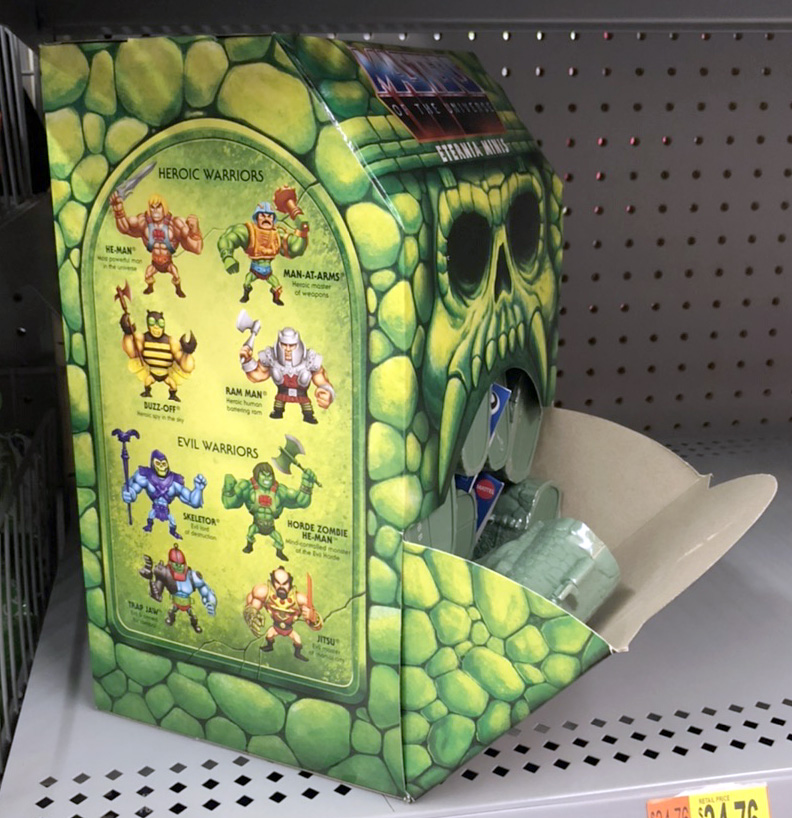 Available exclusively through Matty Collector prior to 2020, Masters of the Universe Eternia Minis by Mattel are hitting brick-and-mortar store shelves now! I recently saw one of the cool Castle Grayskull display boxes at a local WalMart and had to snag a few of these awesome little figures.