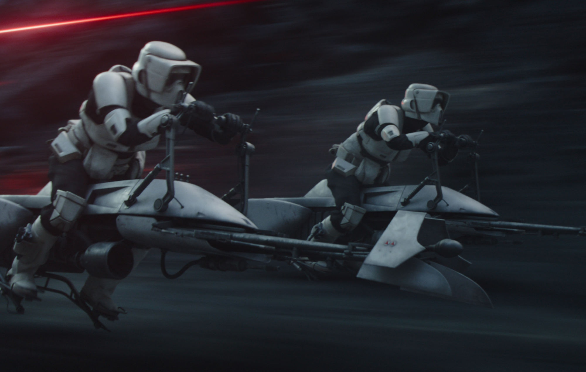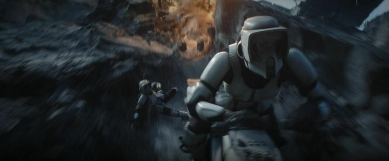 The episode has an amazing chase sequence featuring Dune, Karga, and Mythrol battling with Biker Scouts and TIE Fighters in a hardened magma canyon that eventually opens up into some flats where the Razor Crest joins the battle. It also features a giant cooling system deactivation that hearkens back to a similar sequence featuring Obi-Wan Kenobi deactivating the Death Star’s tractor beam. No rails, a deep pit to fall into, and eventually stormtroopers showing up across the way flooded me with memories of A New Hope.