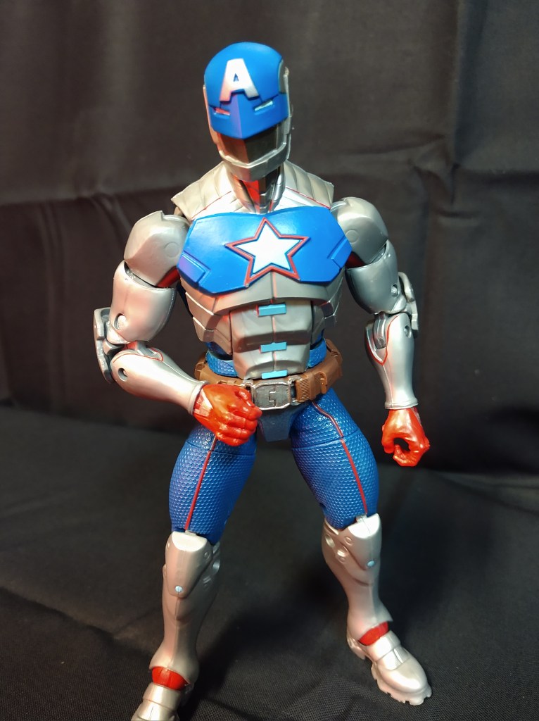 The Civil Warrior figure looks great. I love the attention to detail given to the figure and his shield. The contrasting red, white, blue, and silver paint applications are clean and pop with color. I’m especially fond of the figure’s faceless Steve Rogers look.