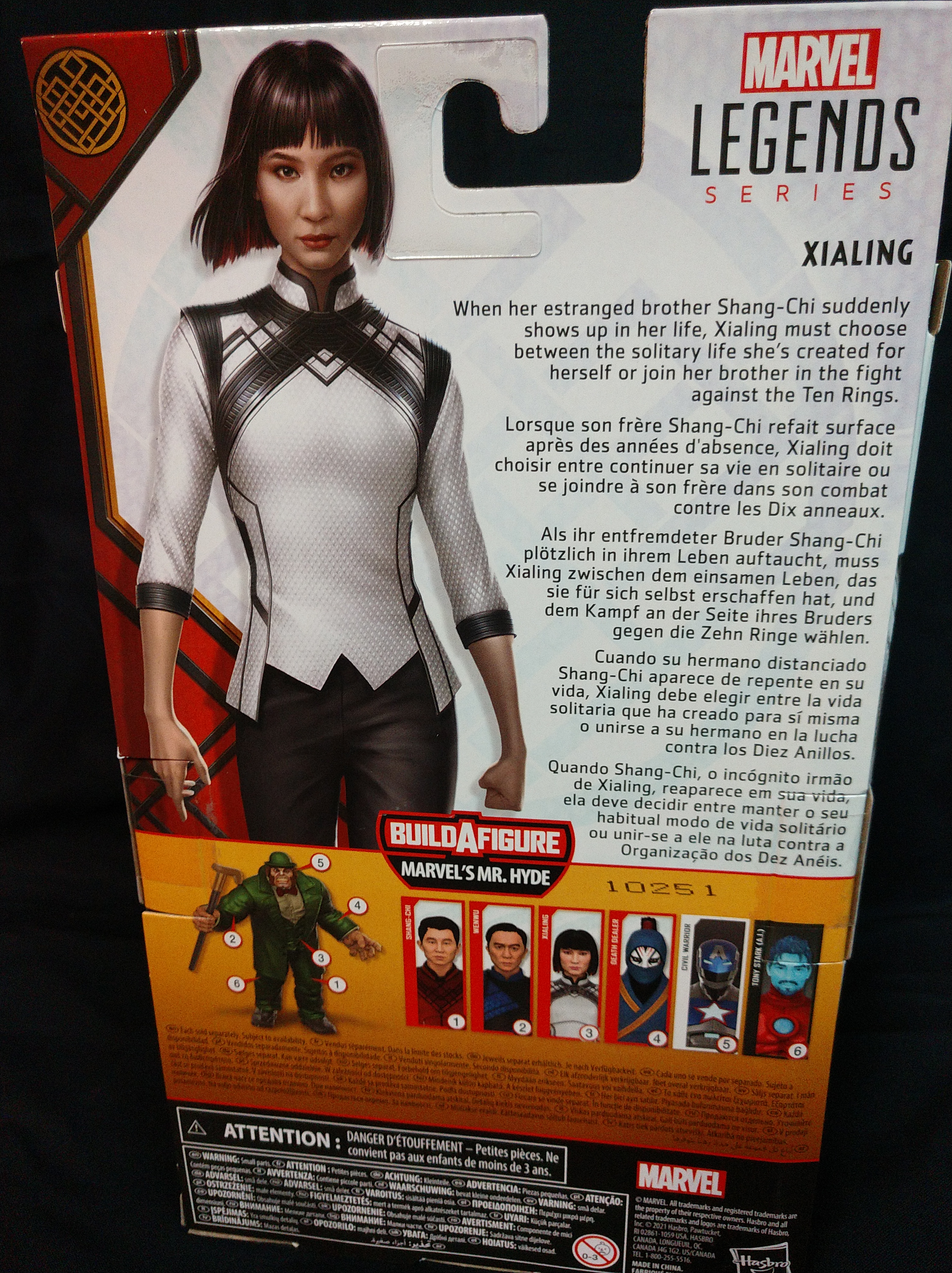 I don’t know very much about Xialing or how exactly she will impact the story in the upcoming Marvel release, Shang-Chi and the Legend of the Ten Rings, but I do look forward to seeing her come to life on the big screen. She’s Shang-Chi’s sister and will be portrayed by Meng’er Zhang in the film. Her action figure was released as part of the Marvel Legends series and she’s also a figure in the Mister Hyde Build-A-Figure line.