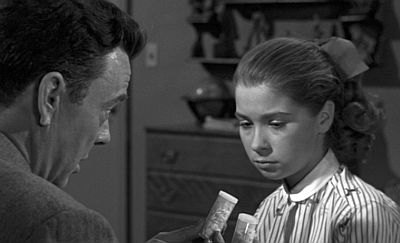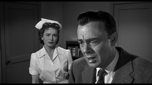 Sharp-eyed fans will recognize Dabbs Greer as Dr. Will Beaumont, a colleague of Dr. Beecher who attempts to save Beecher’s life. Greer is perhaps best known for his role as Reverend Alden in Little House On The Prairie or from his many guest appearances in series such as The Rifleman, The Brady Bunch, and even Lizzie McGuire, which was his last screen performance. Also of note is the performance of Kenneth Tobey (above, right) who plays Sheriff Buckley in the film. Tobey was a prominent actor in 50’s horror and sci-fi films such as The Beast From 20,000 Fathoms and The Thing From Another World.