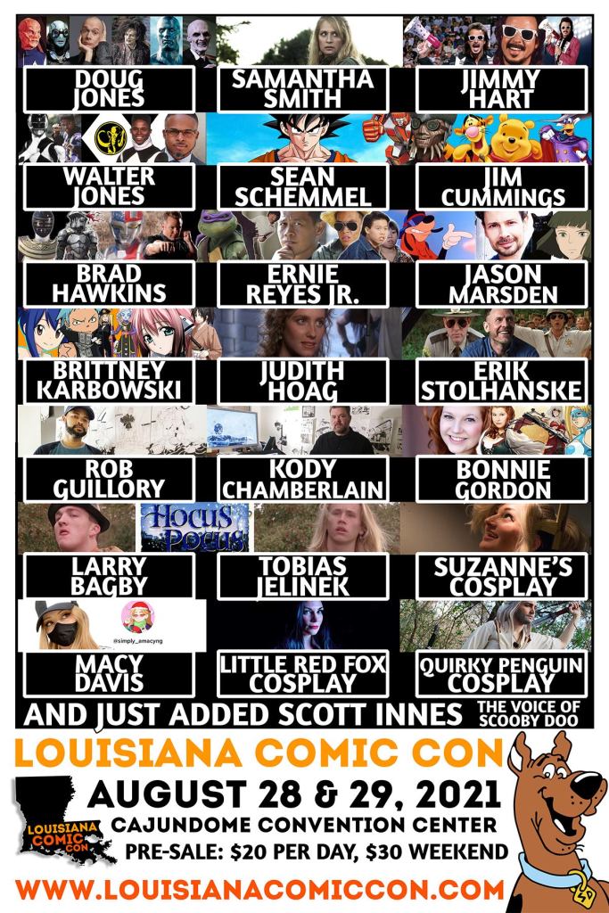It will also be exciting to see the lovely Bonnie Gordon again. I saw her the last time that she attended Louisiana Comic Con and plan to say hello again. Doug Jones, who has probably been in more films that you’ve seen that you never knew that he was in, will also be in attendance. I’ve met Doug Jones before and have to say that the convention bagged an awesome headliner with him. He’s extremely nice, hilarious, and has come a long way since I first met him.