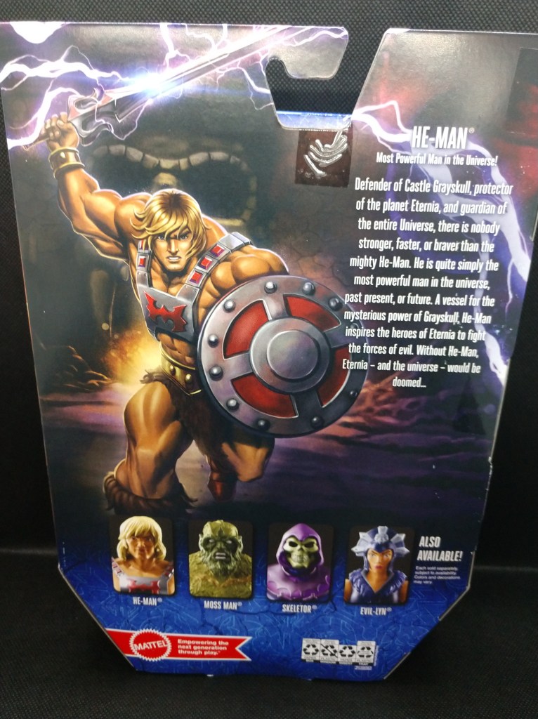 He-Man comes in a beautiful box just like every other figure in this line. The back of the box features a great illustration of He-man and shows four of the figures in the line. The only two missing are Battle Cat and Skelegod.