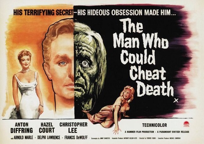 Based upon the play by Barre Lydon entitled The Man In Half Moon Street, 1959’s The Man Who Could Cheat Death tells the tale of a man who wishes to live forever…..but only if others die for him! The film stars Anton Diffring, Christopher Lee, Hazel Court, Delphi Lawrence, Arnold Marle, and Francis de Wolff. It’s different from your standard Hammer Horror production that features vampires, werewolves, and mummies. Instead, it features a brilliant doctor who, along with his colleague, discovers the source of eternal youth. In order to maintain his youth, however, the doctor must remove a gland from a suitable living human and transplant it into himself. This must be done every ten years or the aging process immediately occurs, ensuring death for the doctor.