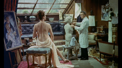 In the film, Dr. Georges Bonnet (Diffring) is having a party for his latest creation, a sculpture of the young model named Margo (Lawrence). Despite being a brilliant doctor, Bonnet is also known to be an amazing artist. He quickly ends the party and rushes everybody out of his home whenever he realizes that he must drink an elixir to keep his body from aging. His friend, Dr. Ludwig Weiss (Marle), is three weeks late on arriving at Bonnet’s home and he is needed to perform the surgery that keeps Bonnet youthful. Unfortunately for poor Margo, she happens to walk in on Bonnet when he is about to drink the elixir. He attacks her and we don’t see her again……
