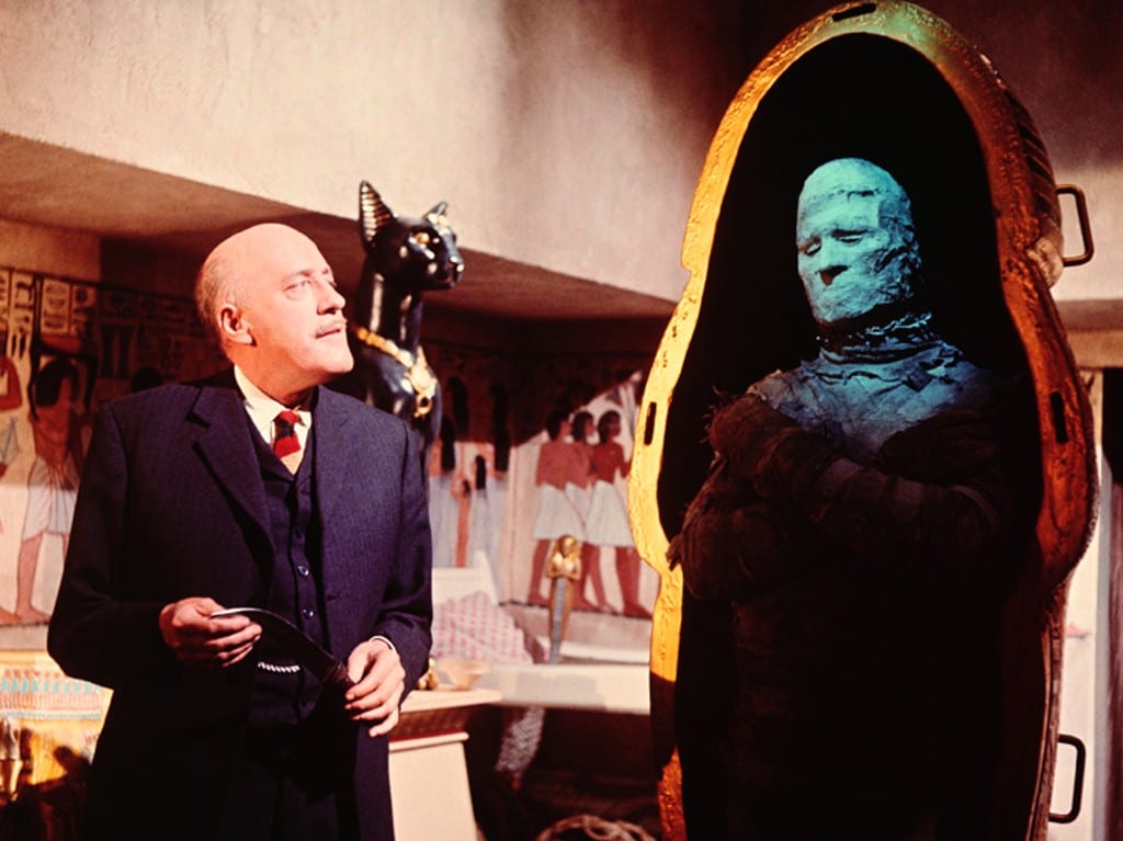 Despite the protestations of Hashmi Bey, an Egyptian government official who wishes to see the mummy and the treasure from its tomb placed into a museum, and of the Egyptologists, American backer Alexander King decides to put all of the artifacts into a traveling roadshow in order to make money off of the discovery. On the way to London, two of the archaeologists, Sir Giles and Ronald Bray, are attacked by a mysterious man who is stopped by Adam Beauchamp, a wealthy “friend of the arts” who decides to aid the group once they arrive in London. In London, members of the excavation party begin to die one by one. It is soon discovered that the mummy of Ra-Antef is the culprit, but who is controlling the mummy? All of that is revealed in the film and I won’t spoil it for you. Watch The Curse of the Mummy’s Tomb to find out what happens.