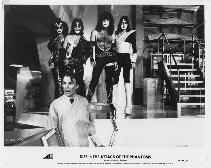 Despite all of these misfires, the show did have a couple of things going for it. Number one, KISS was on top of the world at the time and their concert performances (even though they were lip-synched) in the film were great. Even when the band poses as the animatronic doubles that Devereaux makes of them to sing an alternate version of Hotter Than Hell entitled Rip & Destroy, the track still sounds pretty awesome. Secondly, seeing Ace laughing it up, Paul being very serious and sincere with his performance, and Gene and Peter chewing their way through the film gives the movie a certain charm. It should be noted that there was a lot of trouble going on within the band itself despite their popularity, part of which was evident in the release of the band’s iconic four solo albums just one month prior to the film’s release. If nothing else, the film proves to be a harbinger for the fallout that was to come after albums like Dynasty and Unmasked.