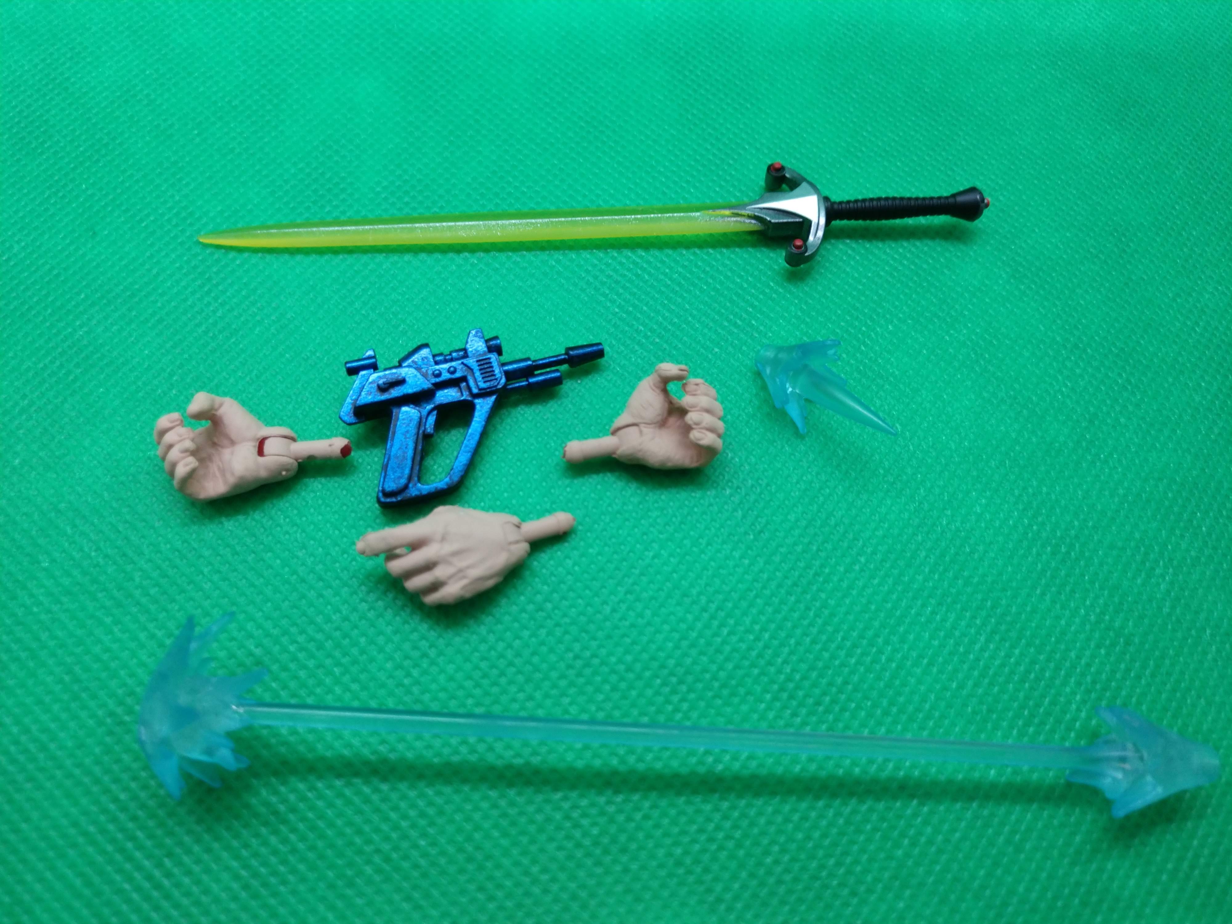 Other than those complaints, this figure looks excellent. He comes with three hands to swap out with the pair that is attached to the figure in the box. He also comes with Flash’s sword, a blaster, and two blaster effects that are standard for all of the figures in this line. The sword is especially nice.