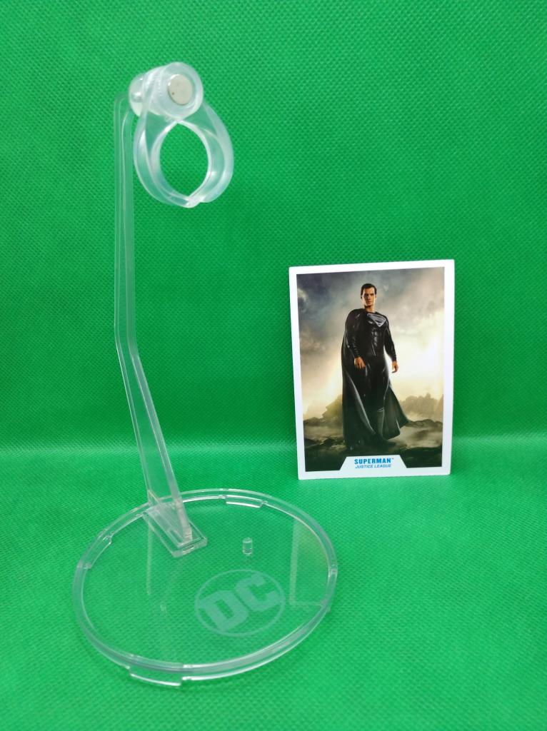 My only complaint about this figure is the massive lack of accessories. Sure, he’s Superman, so I don’t expect him to come with any gadgets or gizmos like I would expect to find with a Batman or Nightwing figure, but I’d love to have at least one other set of hands or possibly a head to swap out on the figure. Instead, we get the standard collector card and a figure base that allows you to have Supes stand or fly. I chose to have him fly on my shelf, and he looks pretty good.