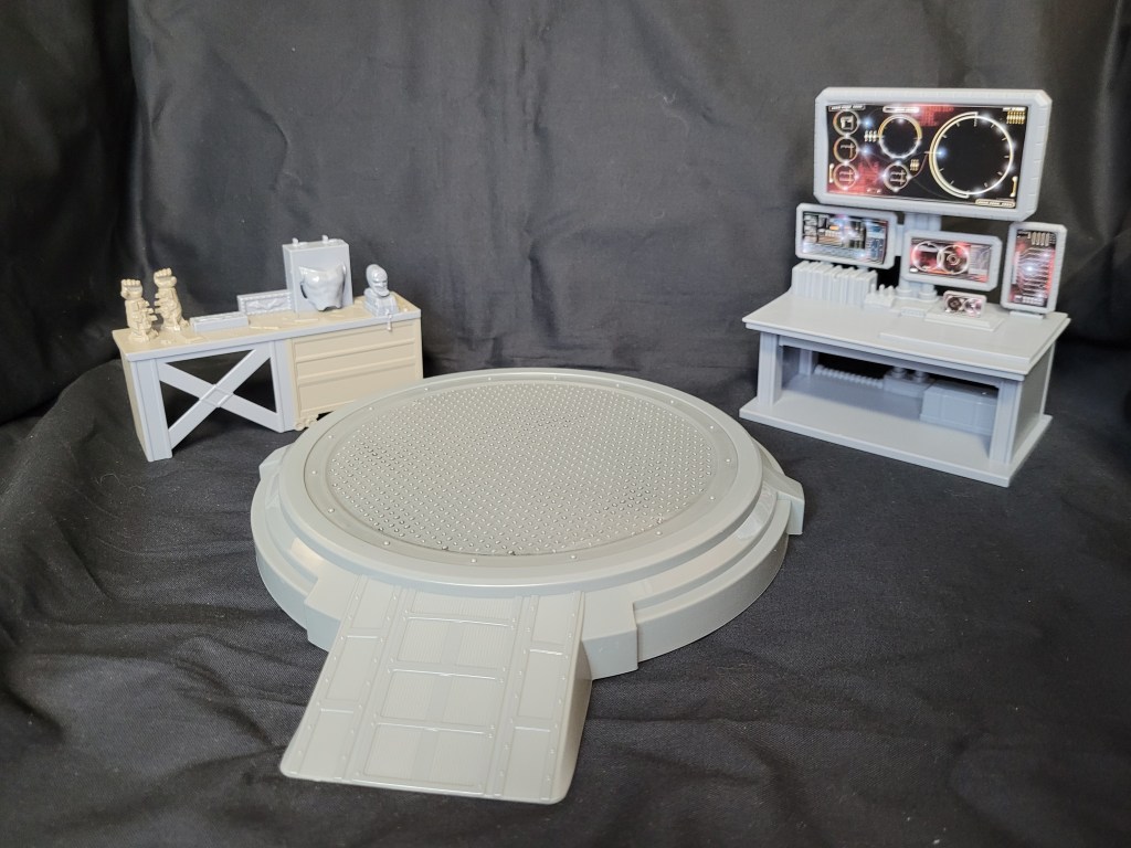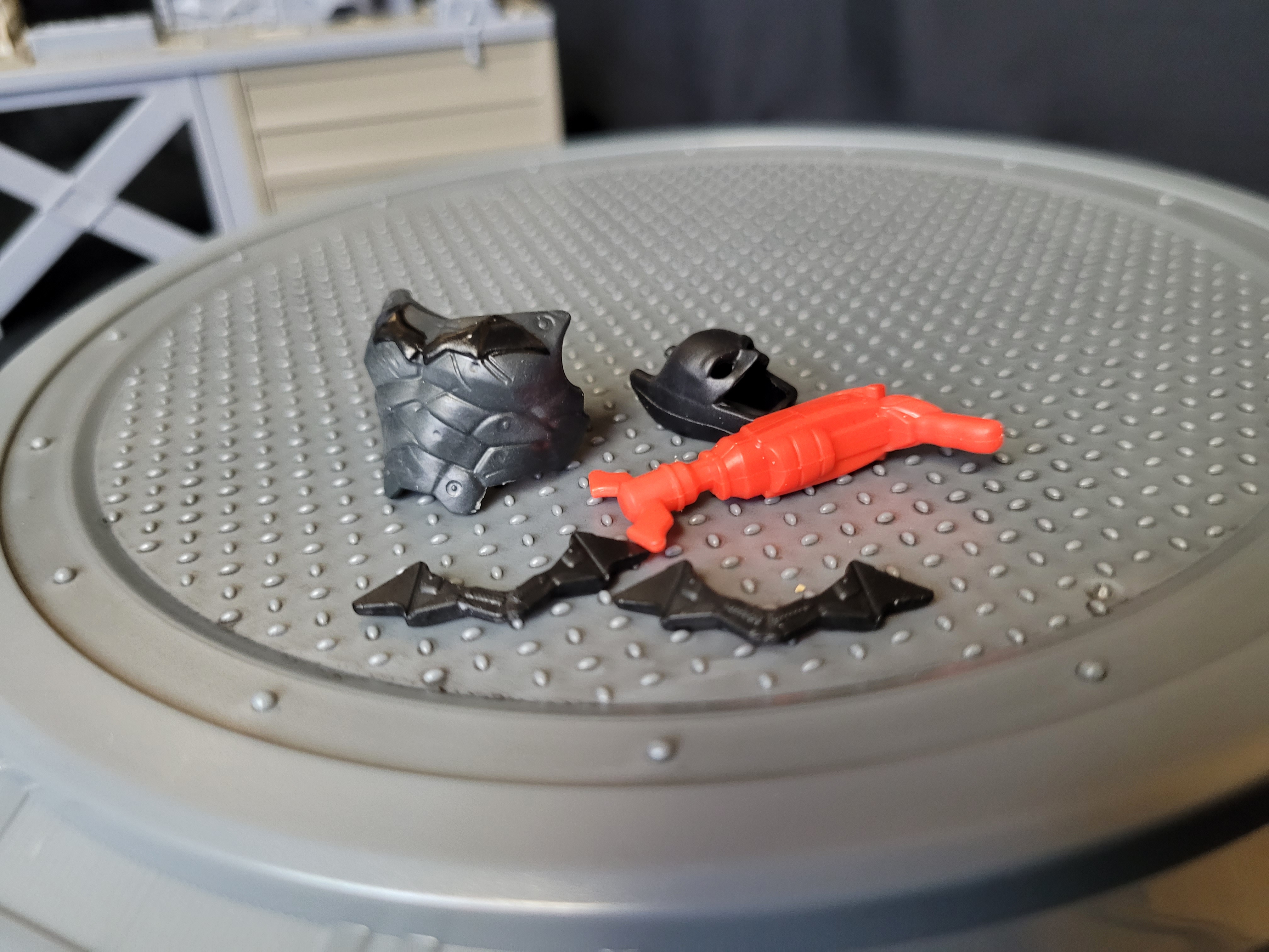 The walkway features a trapdoor that opens whenever you apply just a little bit of pressure to it. There’s also a detachable rail that you can toss figures through but it’s locked in place rather tightly. I don’t see kids getting much use out of the rail but they’ll probably enjoy the trapdoor. The computer desk features monitors that have stickers on them. The stickers on the one that I received were bubbled up a bit and I had to smooth them out a bit. Once I did this, the desk looked great. I love the work bench. There are tools, Batarangs, and a pair of Batman’s gloves molded into the desktop and a place to store the cowl and chest plate. The cowl slides onto a molded head and the chest plate snaps into place on a molded chest. They look great on the desk. The grappling gun and extra Batarangs look fine enough, but the grappling gun looks nothing like the one from the film and that Batarangs fit poorly in Batman’s hands. Penguin’s suitcase and umbrella fit his hands better than than Batman’s accessories and, at least in my opinion, look better as well.