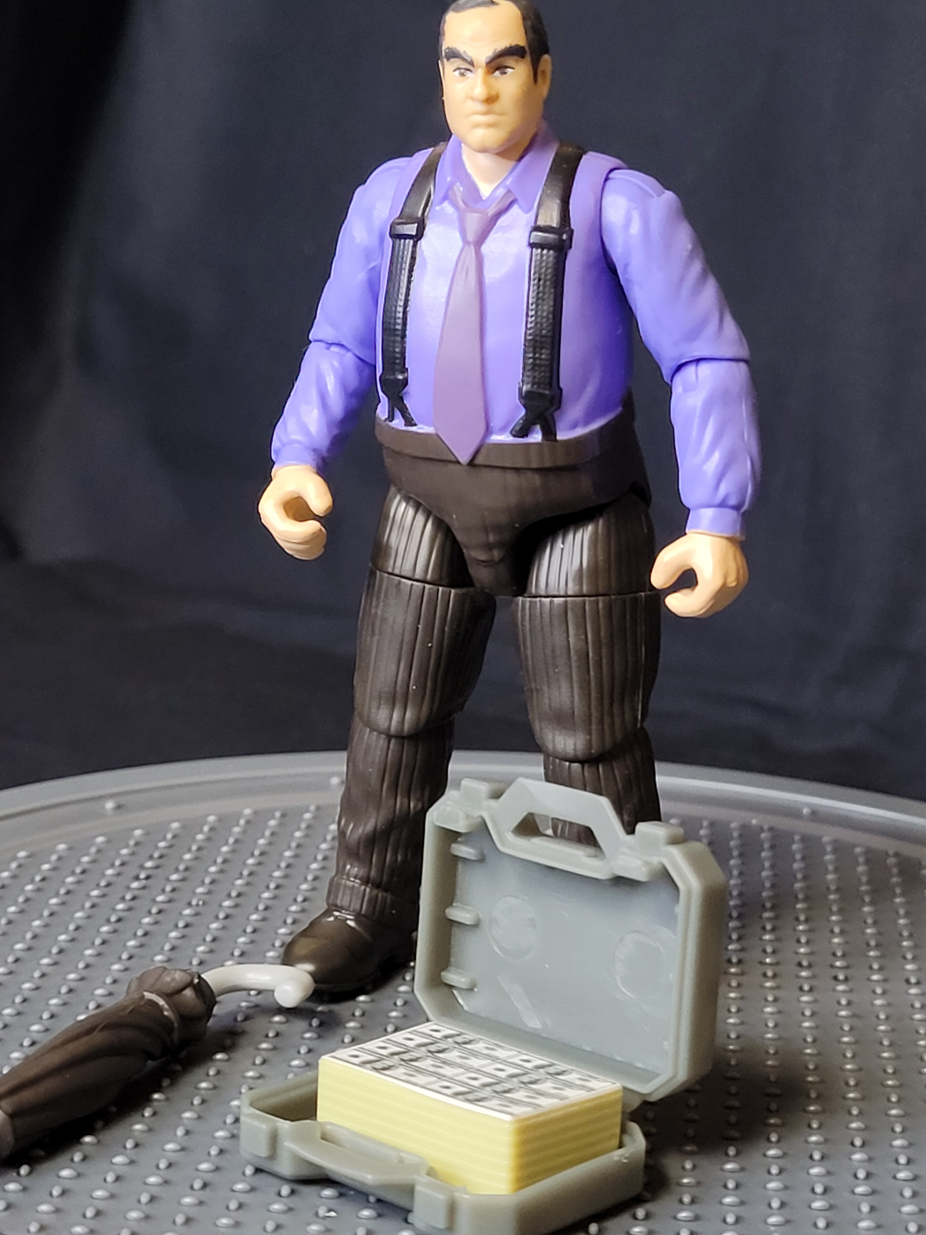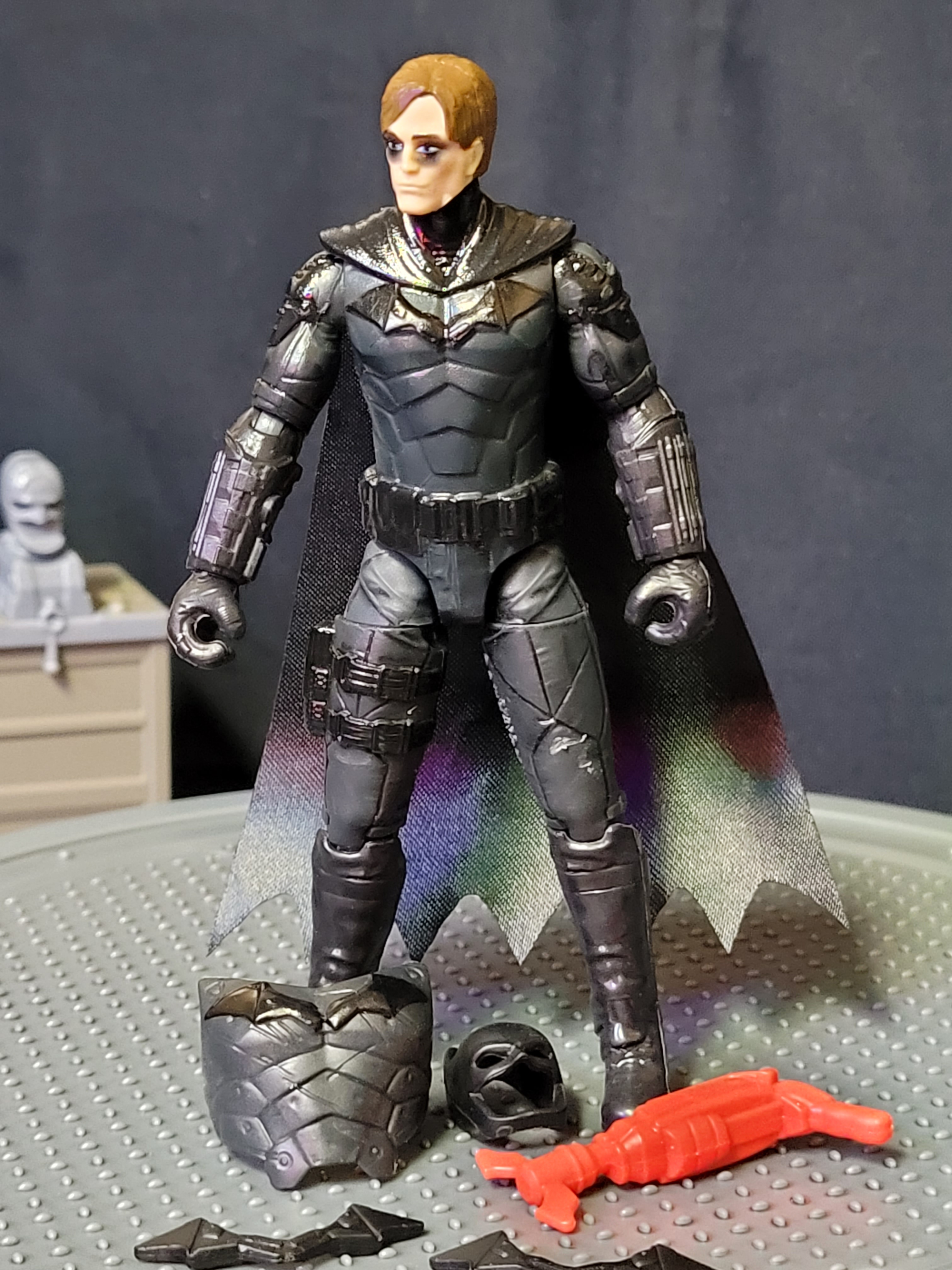 The two action figures that come with this set are pretty good. The likeness of Robert Pattinson as Batman/Bruce Wayne is okay, especially for a Spin Master figure, but the figure’s cape sits loosely on its back and looks very cheap. The cowl that comes with the set can be placed on Batman’s head, but the back of the cowl is completely open and looks oversized on the figure. I recommend purchasing another cowled Batman figure if you want that look and keep this one unmasked. The Penguin figure doesn’t look much like Colin Farrell in the film. The figure features a much gentler looking face without all of the scarring that Farrell’s version of the character features in the film. Despite this fact, I love this figure. There’ssomething about him that screams “Businessman who just had a bad day” and I love it. Both of the figures feature the standard eleven points of articulation expected to come with Spin Master figures.