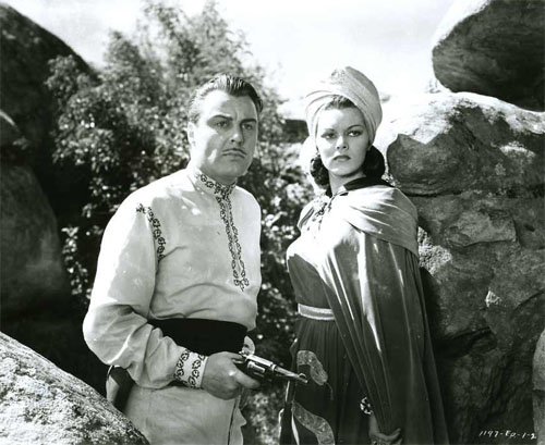 The serial stars many familiar faces. Kay Aldridge portrays Nyoka. While her overall performance is a bit lacking, she seems to have no problems with getting tied up, nearly burned, almost crushed by a spiked wall, or finding herself in all sorts of jeopardy. Her nemesis in the film, Vultura, was portrayed by Lorna Gray. Gray, who would earn a Golden Boot in the 1990’s for her work in western films, had a short but very successful career. Aside from starring in a number of serials, Gray also starred in films with actors such as John Wayne and Monte Hale. Speaking of westerns, Nyoka’s hero in the film, Dr. Larry Grayson, was portrayed by the Lone Ranger himself, Clayton Moore. In a much smaller role was Jay Silverheels. He portrayed Tonto in the long running Lone Ranger series with Moore. Also in the serial was Charles Middleton as Cassib. Middleton thrived as Ming the Merciless in the Buster Crabbe Flash Gordon serials. Throw in serial regulars such as the hilarious William Benedict and the reliable Tristram Coffin and you’ve got an amazing cast.