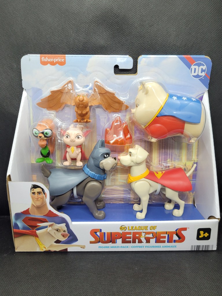 The promotional push for Warner Bros. and DC’s upcoming League Of Super-Pets film is well underway. The film’s trailer has been out for quite awhile and toys have been showing up in Happy Meals at McDonald’s and on store shelves. I am fortunate enough to have acquired two of the Fisher-Price figure packs to review. I received the League Of Super-Pets Figure Multi-Pack and the Batman & Ace Figure Pack.