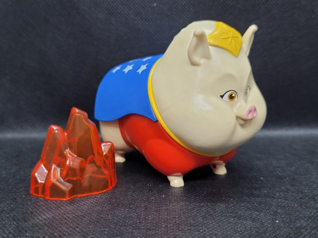 The multi-pack set features six figures and a block of red kryptonite. The included figures are Krypto (Superman’s dog), Ace (Batman’s dog, not to be confused with Titus), PB (Wonder Woman’s wonder pig), Chip the Squirrel (based off of Ch’p, a member of the Green Lantern Corps), and two guinea pigs which, at least to my knowledge, are new characters. One is Pigasus, the flying guinea pig and the other one is Lulu, the villainous guinea pig.