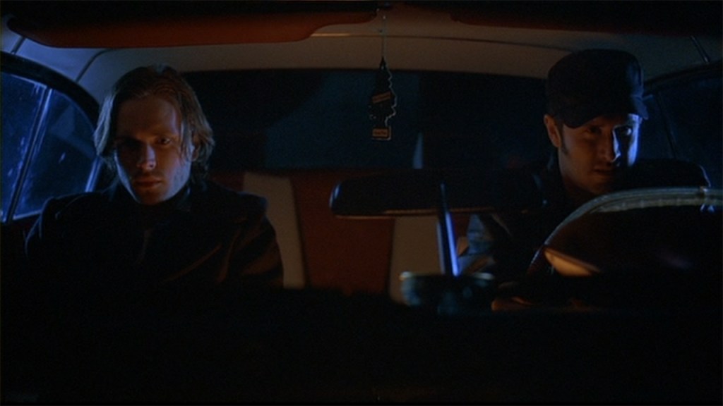 Not all of the performances were bad. Nicky Katt shines as a draft dodger who picks up Alan on his way to see his mother. Barbara Hershey is also quite excellent as Alan’s mother. The real star here is David Arquette, who plays against type as George Staub, a fifties-styled greaser who gives Alan the last ride to the hospital. The kicker? Staub is dead and is in town to take a soul with him to the afterlife. He uses fear, humor, and rage to manipulate Alan and he does a fine job of it in this film.