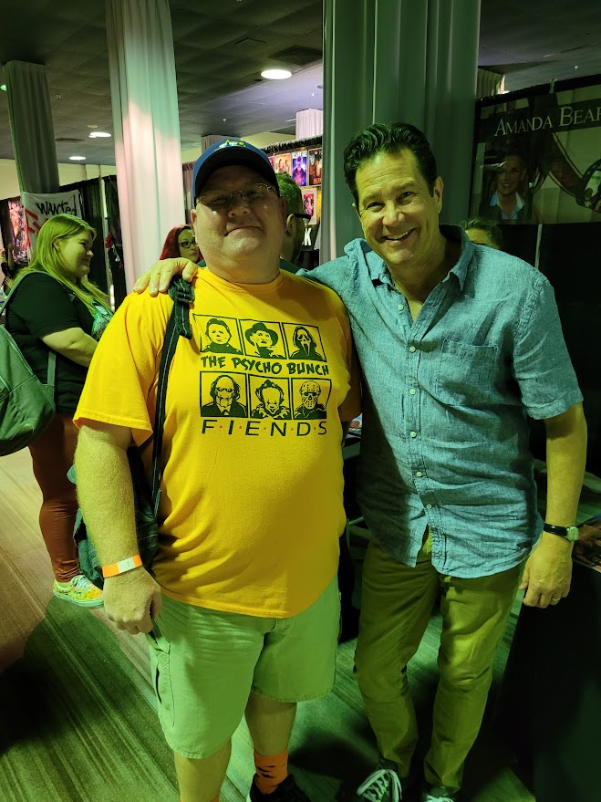 There were two vendor areas, both of which also included celebrity guest areas. Vendor Room One featured a number of great guests, artists, and vendors. It was also the hottest room in the building. The second vendor room was much nicer. It was larger, well cooled, more open for walking, and divided into two areas. One part of the area featured greenish lighting that gave a pretty cool effect to photos. It was in this area where I got to meet both William Ragsdale and Amanda Bearse. Both of them were amazing but Amanda Bearse went above and beyond with her kindness. “Marcy loves you, too!” was the last thing she said to me as I left her table, autograph and selfie in tow. She was so lively and fun. If you get the opportunity to meet her I highly recommend it. William Ragsdale was laid back and very nice as well. I also recommend meeting him if you have the chance.