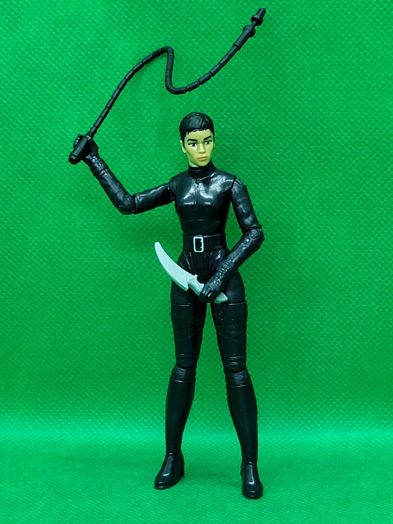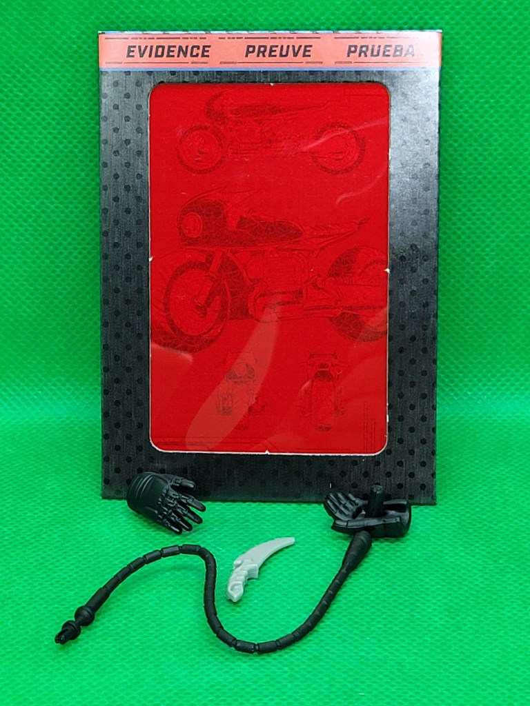 Neither figure looks very much like their live action counterpart from the film. Both of them come with three accessories. Catwoman comes with a knife, her signature whip, and a pair of claws that look ridiculous when placed on her hands. Batman comes with a chest plate, a Batarang, and a red, oversized grappling gun. Both figures also come with a mystery card that reveals “evidence” for play. I actually like the cards but don’t see kids getting much mileage out of them.