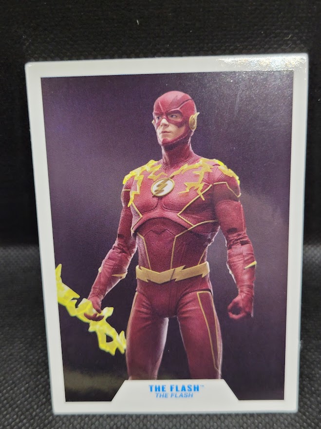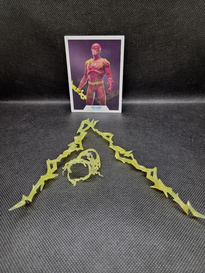 The figure comes with the standard DC base and a collector card. It also comes with two speed force lightning “bolts” that Barry can hold and one speed force accessory that can be attached to his chest. The chest piece is a bit awkward, but the bolts look pretty cool.