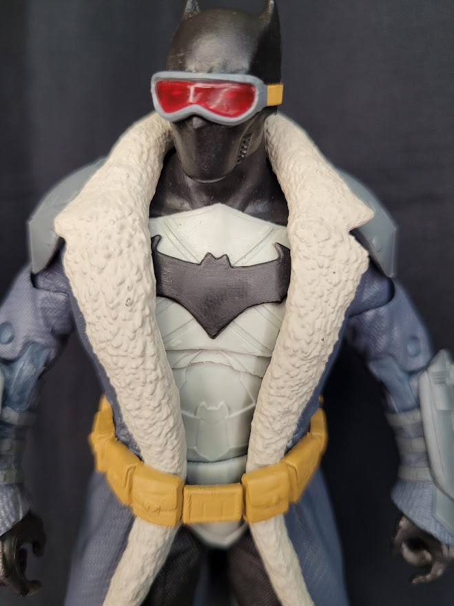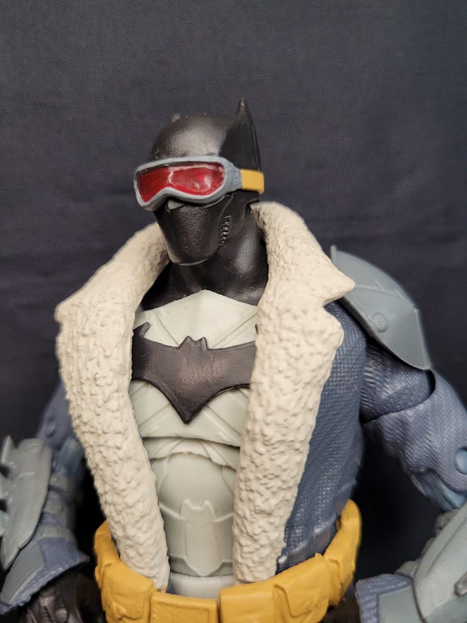 The figure that proves to be the biggest disappointment in this line is Batman. Don’t get me wrong, he looks excellent, but he is severely hindered when it comes to posing. The figure features a great looking long coat, goggles, and utility belt that have plenty of detail and amazing paint apps. Sadly these are the same things that make Batman almost entirely immobile save for his arms. He comes with a comic accurate Batarang that doesn’t fit in his hands and the arms and sword of the Frost King BAF. Again, as with every other figure in this line, he looks great on display.