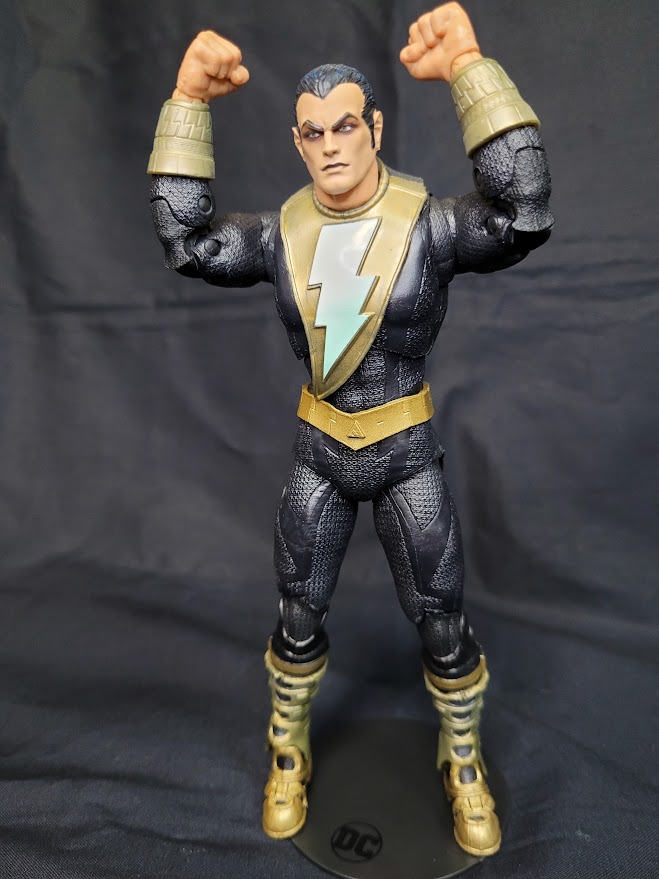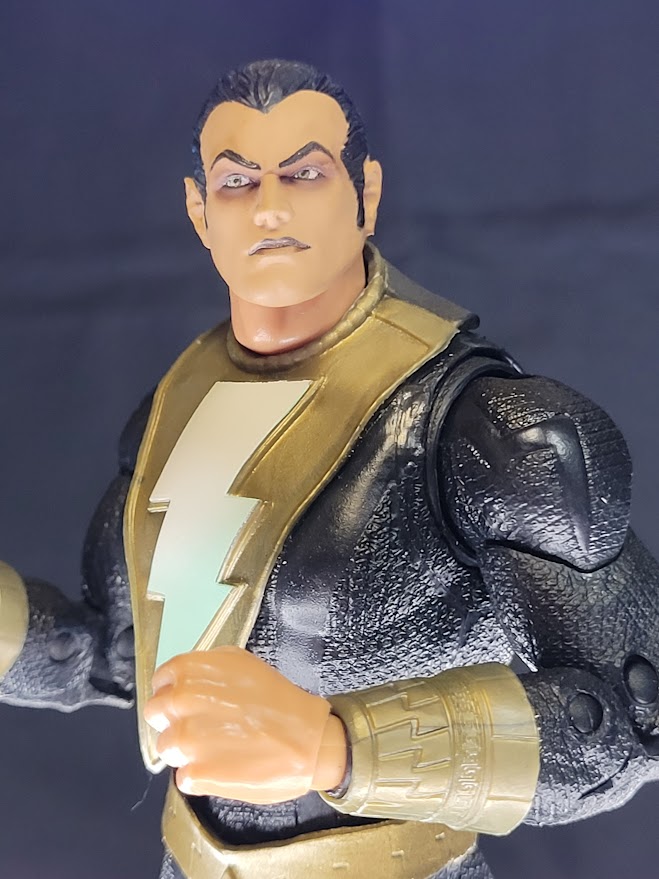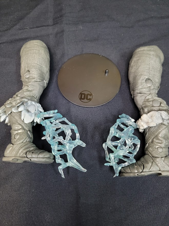 Like Green Lantern, Black Adam is a fairly simple figure that isn’t hindered by armor, cloaks, or coats. This allows for excellent posing options. He’s also a much more sturdy figure when compared to Green Lantern as well. He has a decent amount of weight to him and may be a bit too clunky for some collectors but I like him just fine. His paint apps are great, especially on his boots and on the massive lightning bolt on his chest. He comes with two lightning “attachments,” and the Frost King’s legs.