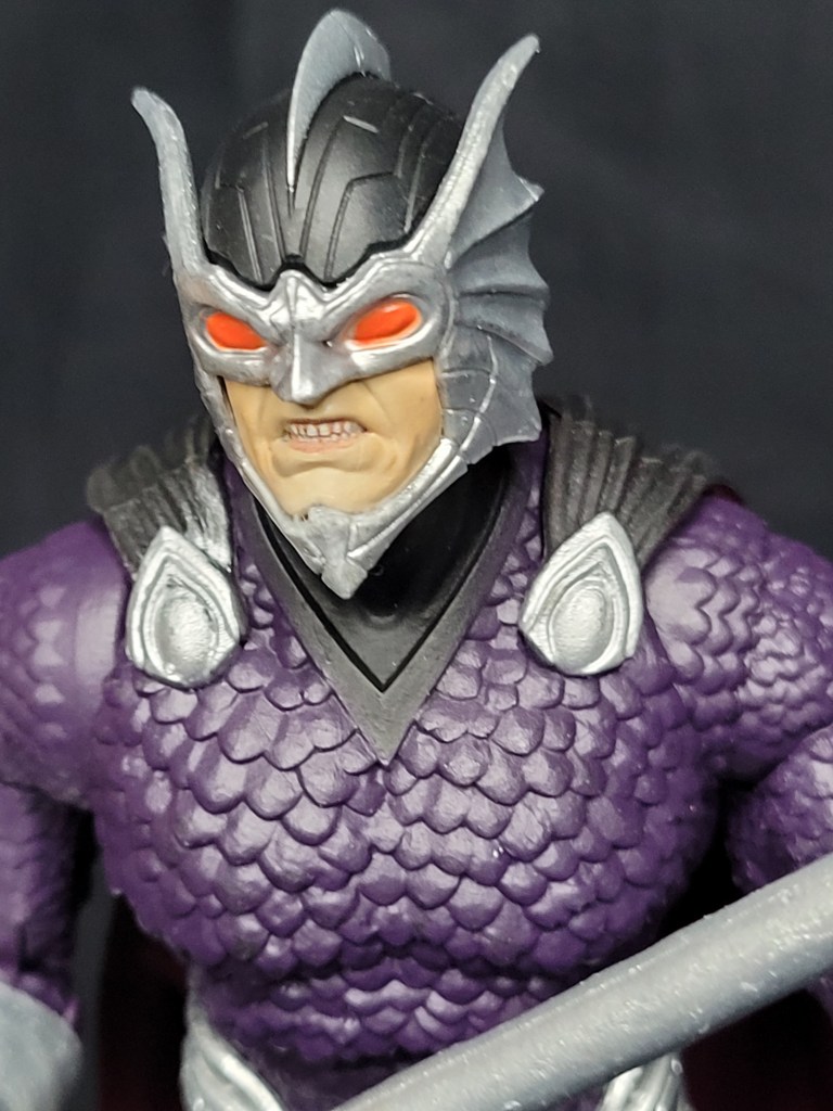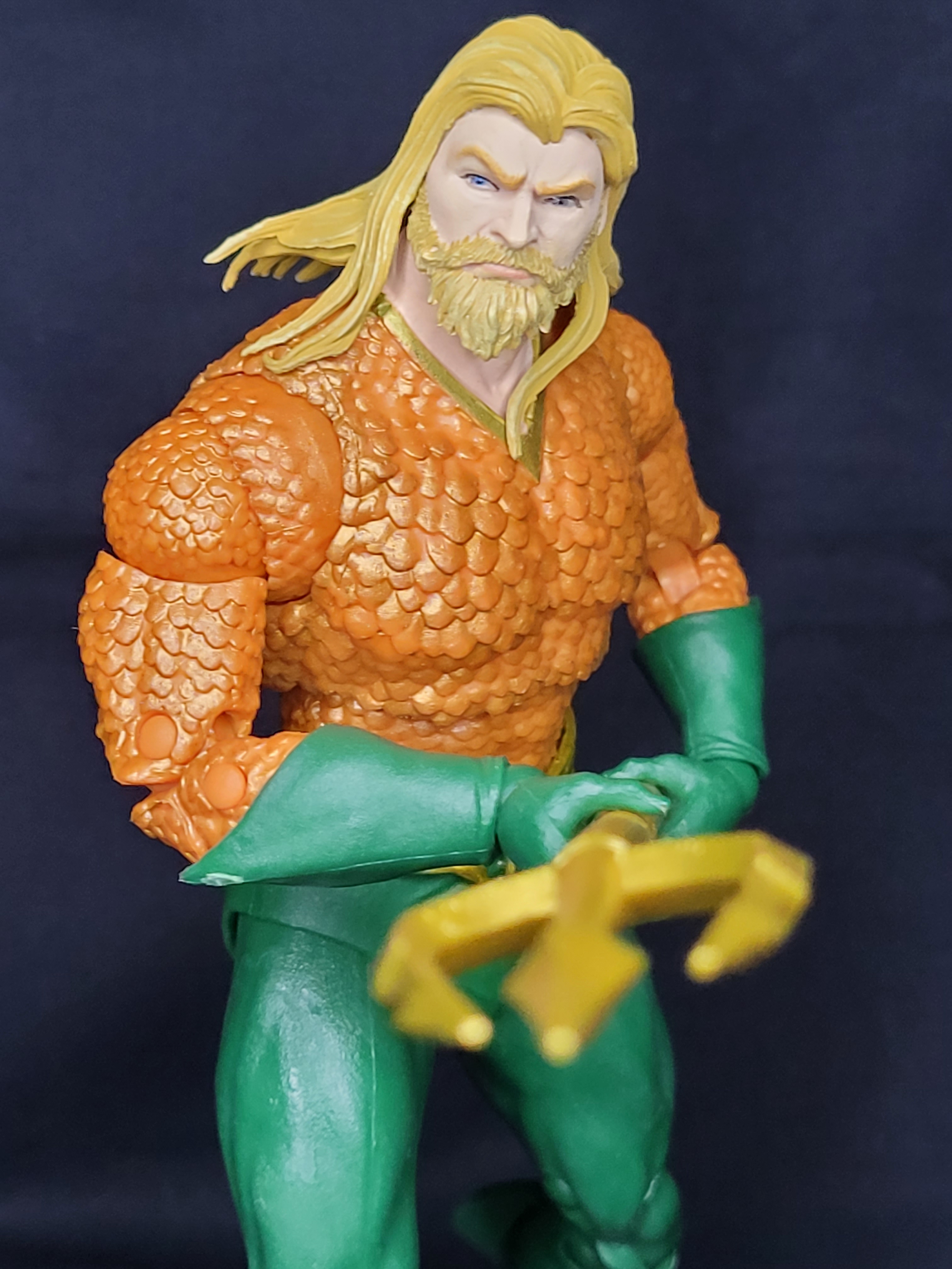 Both figures look amazing. Of special note are the facial features on Ocean Master. His gritted teeth look awesome. The folds in his cape also look great. Despite the fishy friction between these two, both of them sport great looking scaled armor. Also, watch out for the fins on Aquaman’s calves and forearms. They are very sharp! Aquaman does have a slight side-eyed glance for some reason, but I must admit that it comes in handy when posing these two figures together.