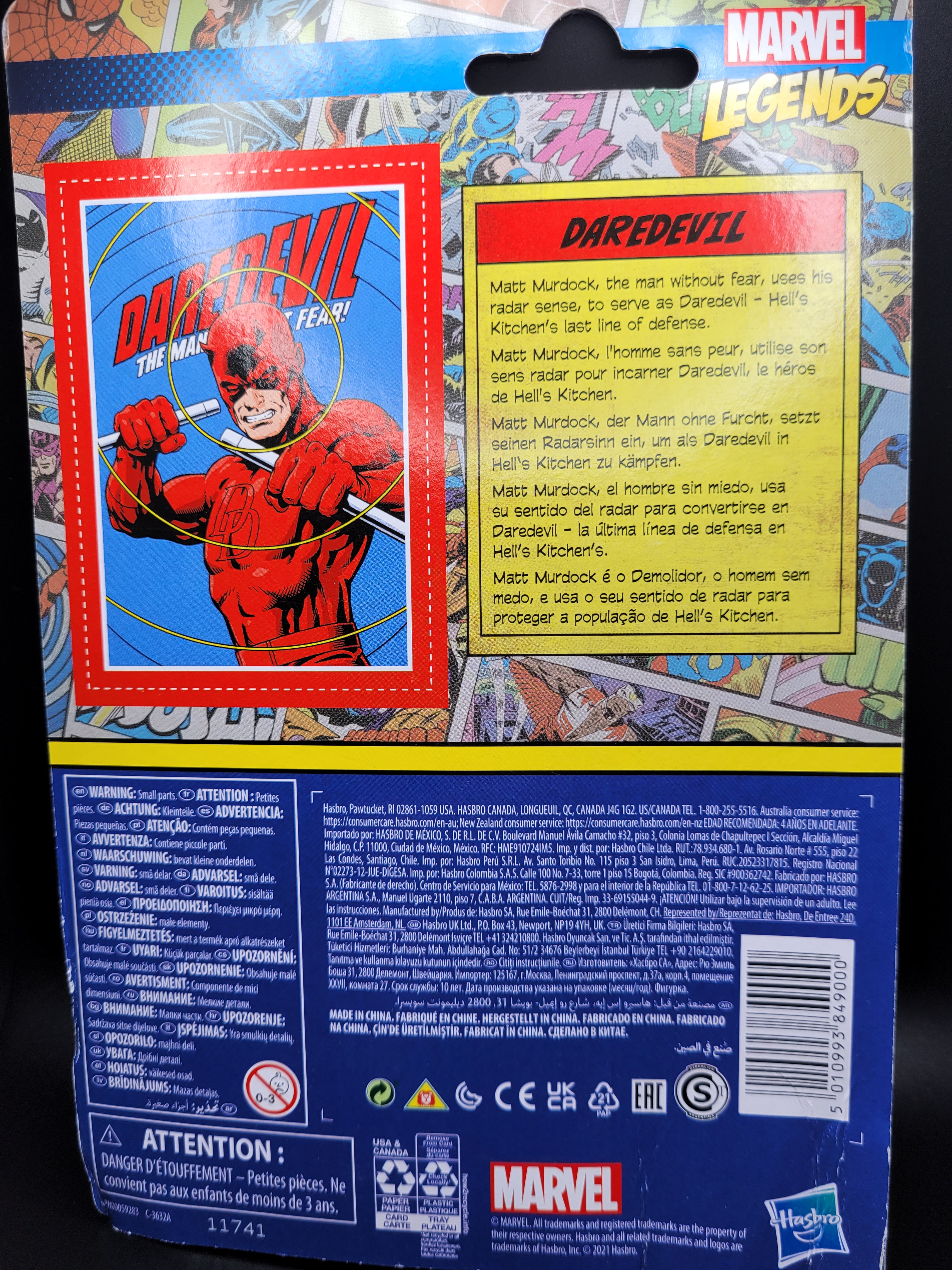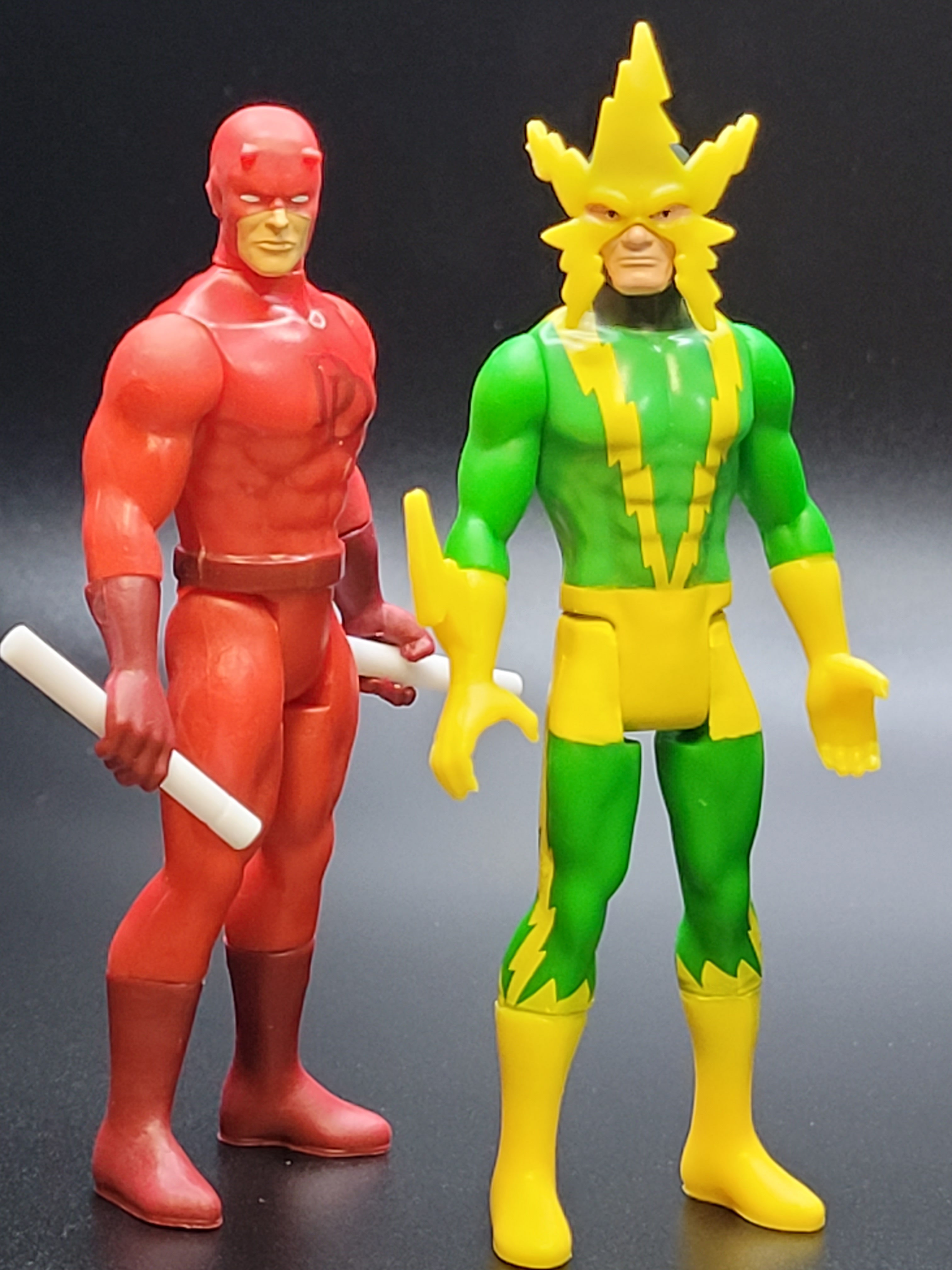 Being a huge fan of Daredevil and also a pretty big fan of the classic looking Electro, I decided to pick up both of these figures at a price that was just a tad bit above half of the original Walmart retail price. Both were released in 2021. The Electro figure is a reissue of the 2020 figure with a different cardback. Both figures come with the previously mentioned seven points of articulation. They have swivel heads, shoulders, hips, and forearms (the two extra POA). The boots look like they are articulated but they are actually glued in place. The paint apps are reminiscent of classic figures from the 70’s and 80’s as well. Both figures have peg holes in their feet and Daredevil, for whatever reason, has a peg hole in his back.