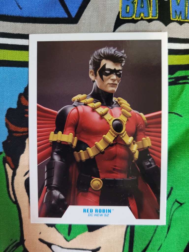 The figure is based upon Tim Drake’s New 52 look as Red Robin. I know that it isn’t necessarily his most popular look but I personally love it and wish that he would have kept some version of it with DC Rebirth. The figure comes with the standard collector card and a DC figure base and one lone accessory, Red Robin’s bo staff.