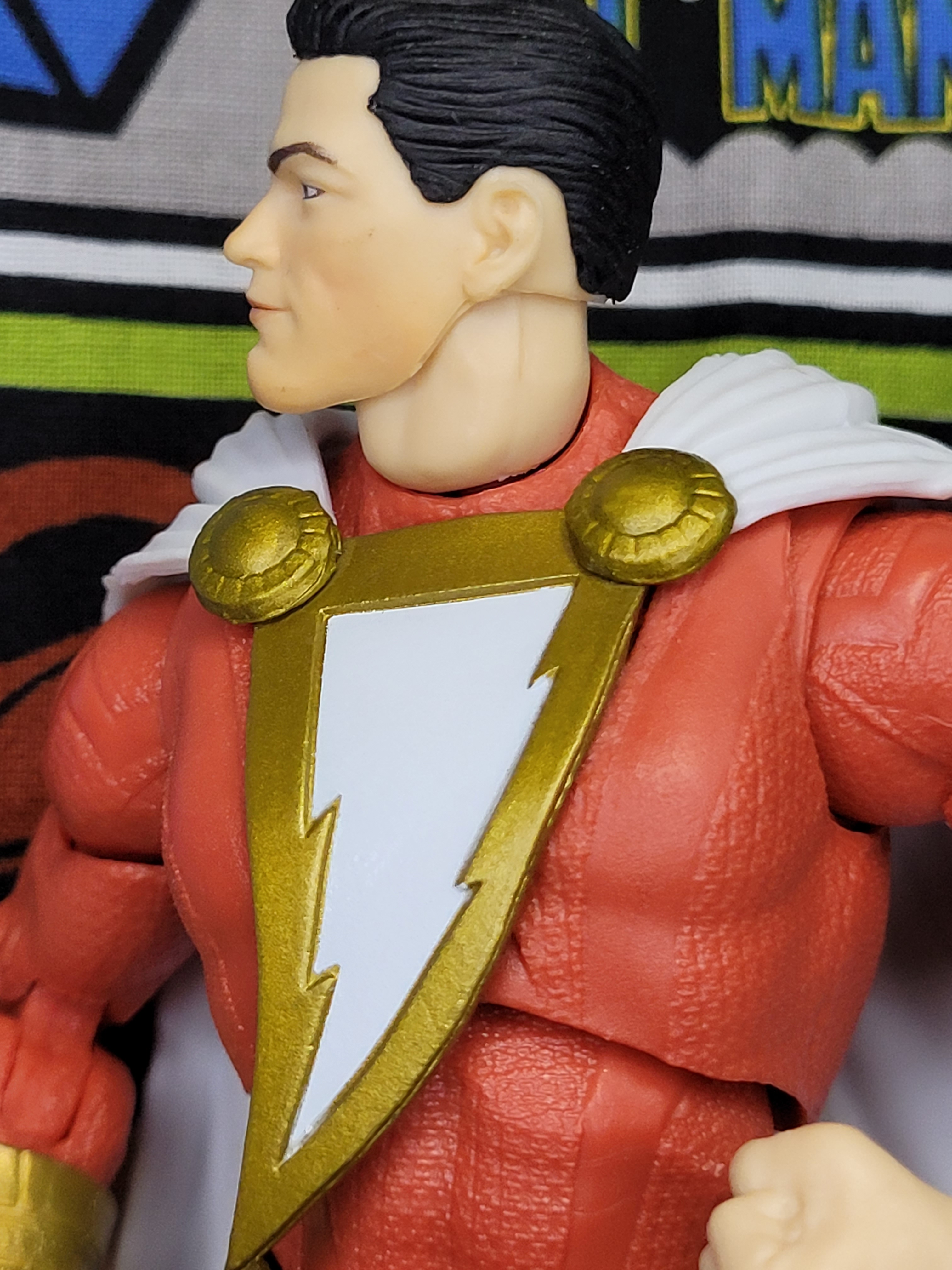 Shazam’s body is the same mold as the one used for the Endless Winter Black Adam. The closed fists are also the same ones used on Black Adam. The only differences body-wise in the two figures are the additional open hands included with Shazam, the different colors on the two suits, the head sculpts, and the lightning bolt across the chests of the figures. On Black Adam, the bolt is essentially a neck piece. On Captain Marvel, the bolt is attached to a cape. The similarities shouldn’t shock anyone due to the fact that the two characters are essentially drawn the same on the page as well.