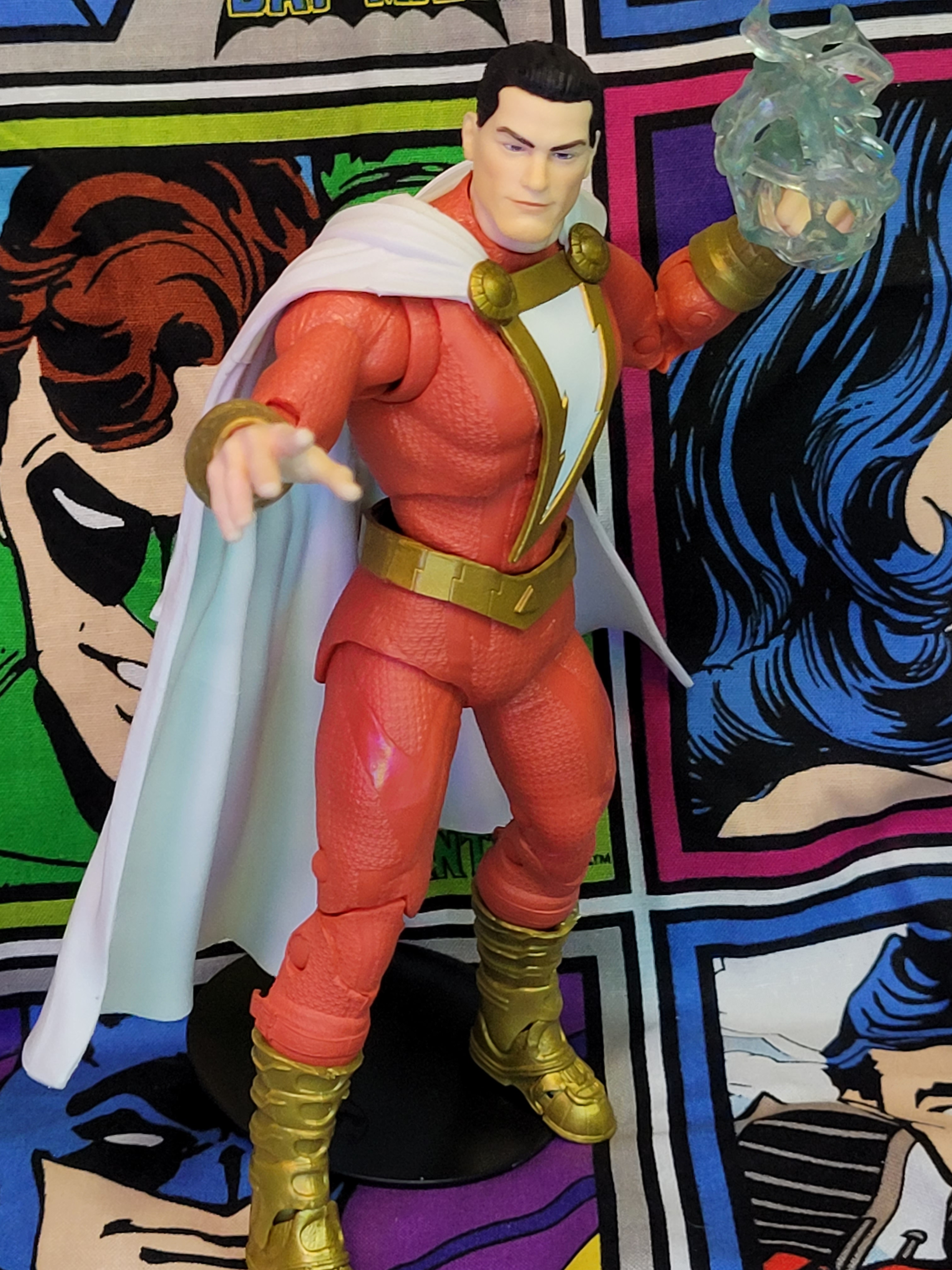 Captain Marvel, ughhh, Shazam, has fairly decent articulation. He isn’t as poseable as many other figures in McFarlane line, but he can be placed into some excellent poses. The biggest issue that I see most people having with this figure is getting him to stand up without a base. The cape makes Shazam very, very top heavy and he has a tendency to fall back as a result. While the included figure base works well enough, I will probably upgrade this figure to a waist-supporting base. It would have been great for Shazam to come with a flying base, but McFarlane Toys seems content with only providing that type of base with Superman figures.