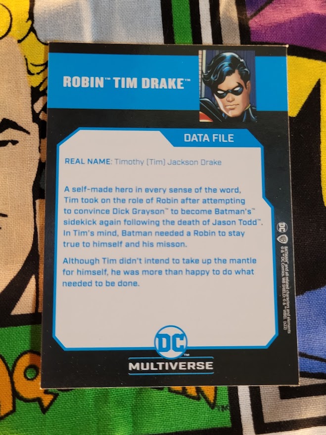It’s been awhile since I last posted a McFarlane Toys DC Multiverse review. To be completely honest, I’ve slowed down on collecting action figures. It’s partially based on the fact that it can be a pretty pricey hobby, but it’s also due to the fact that I’m in a state of transition in my home and my office. I haven’t really been able to photograph figures like I normally do before reviewing them. This particular figure, Robin/Tim Drake, has actually been in my possession for a few months. I’ve had the photos on my laptop for basically the same amount of time. I finally decided to give all of you a glimpse at this figure.