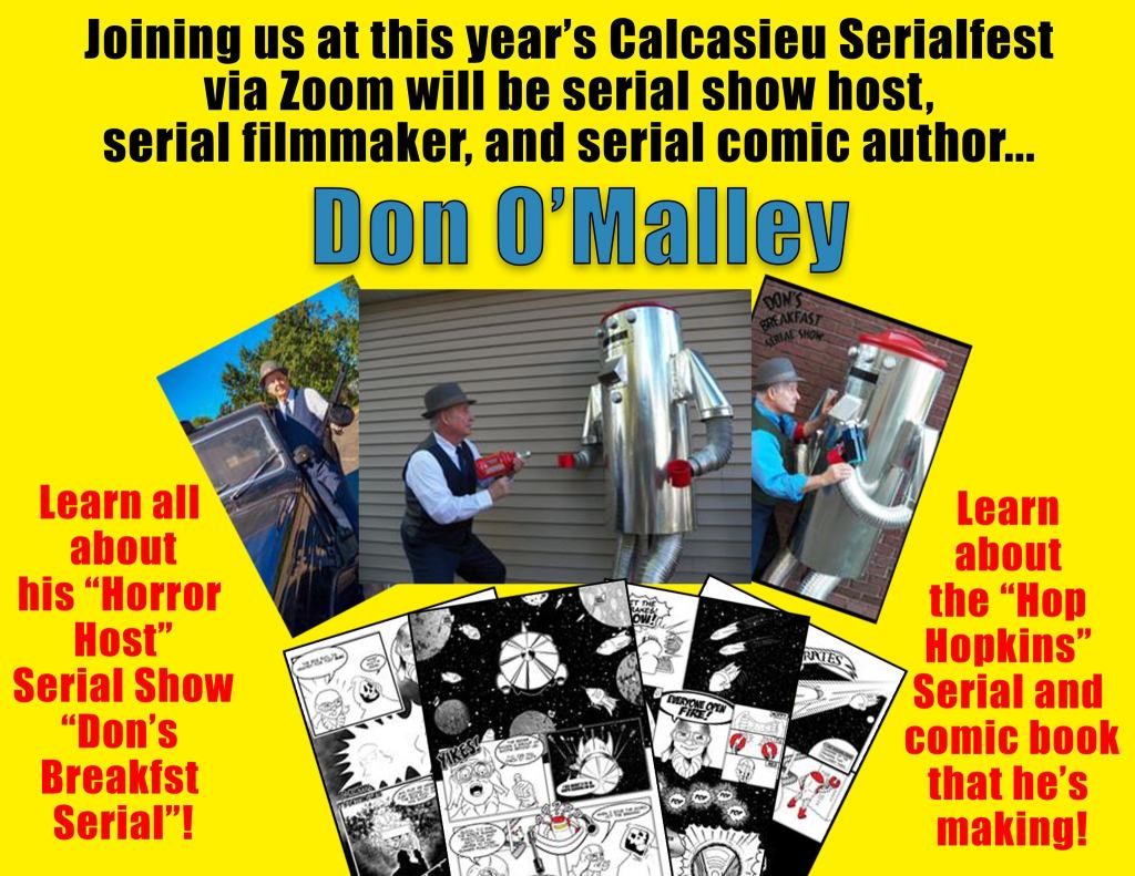 For the first time ever, the festival will feature a presentation via Zoom by Don O’Malley, a serial filmmaker, author, and podcast host. Be sure to check out his show, Don’s Breakfast Serial!
