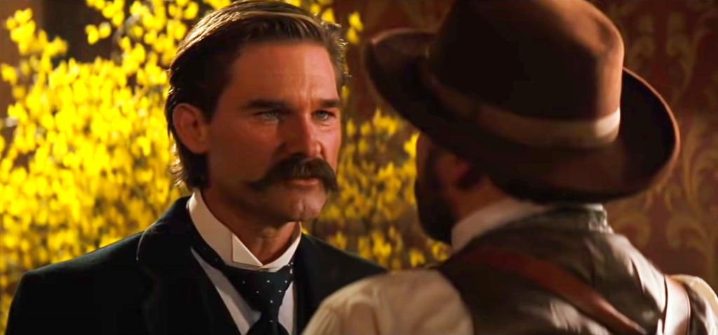 When Doc Holliday and Johnny Ringo first meet in the film, the pair square off against one another with a duel not of pistols, but of Latin. The entire sequence is amazing, but it’s Holliday’s opening line, “In vino veritas,” (“In wine is truth) that sets things in motion. The line isn’t even directed at Ringo, whom Holliday just stated that he’s sure that he hates the gunslinger, but at Wyatt Earp, who tells Ringo and Curly Bill that Doc is drunk (and that they should just ignore him).