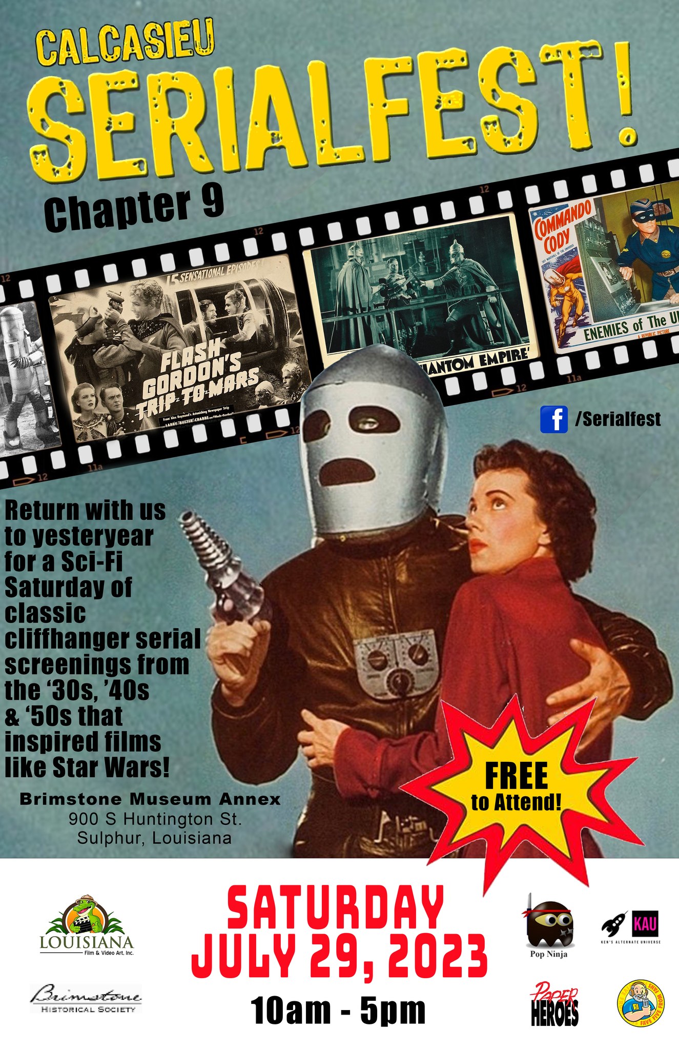 On Saturday, July 29th, the Brimstone Museum Annex will be home to the 9th Annual Calcasieu Serialfest! Join myself and other classic serial fans as we travel back to the days of the cliffhanger, cinematic serials that typically feature between twelve and fifteen chapters, each ending in a suspenseful moment until the final chapter. These films were the first big screen home of superheroes, jungle adventures, and pulp novel adaptations.