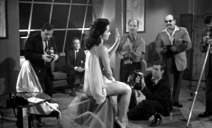 Each time that Bill approached women, he would attempt to avoid others that might see him with them. Unfortunately for Bill, someone almost always showed up to unknowingly save his potential victims. Every “hunt” sequence was creepy. No, not in the “there’s something out to get me” way, but more like a “pervy dude gawking at women” way. There’s an extended driving sequence in which Bill looks at women walking down a street. The camera focuses on the women for very long periods of time. When Bill goes to a strip joint, the camera cuts between looks of seduction from the strippers to looks of disgust from the “average” women that happen to be there with their boyfriends or husbands. Then we get to see a seductive dance by a scantily clad Bonnie Sharie and then a gratuitous cat fight between Sharie and Paula Maurice that, while having no nudity, just feels dirty to watch. We then see Bill attend a beauty contest just in time for the swimwear competition. When he’s tipped off about an old college friend, Doris, who is now an artist’s model, Bill walks into one of her sessions where a group of men are quickly snapping photos of her with hungry looks in their eyes. If you see the American theatrical version, you’ll get to see Adele Lamont in a bikini. If you see the European version, you’ll see Lamont posing in the nude. Much like with the stripper fight and the swimwear competition, this scene is creepy and exploitative. There’s nothing sexy about it all.
