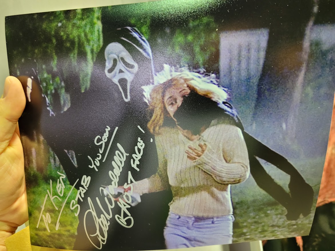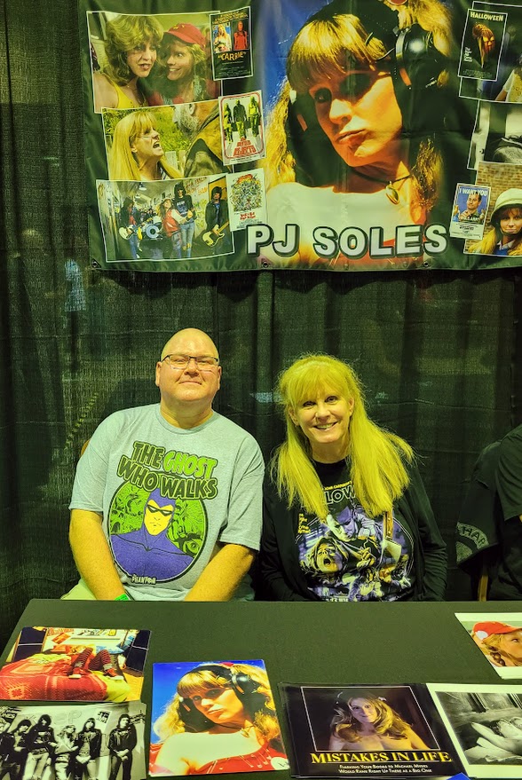 After meeting Mr. Zane, I headed over to Lee Waddell’s table. For those who don’t know, Waddell was the original Ghostface in the Scream films. He’s the guy that “killed” Drew Barrymore on screen. He was a riot. He talked with me and all of the other guests for a good while. He also gave out limited edition “Original Ghostface” wristbands to the first lucky fans to meet him. After acquiring his autograph, my next mission was meeting the lovely PJ Soles from Halloween, Carrie, Private Benjamin, Stripes, Rock N’ Roll High School, and so many more amazing films. I completely wigged out and told her that I loved her! She was very nice and was really happy that I went with a Riff Randell autograph. I wish that I had better control of my nerves at the time, because she was as sweet as could be to me.