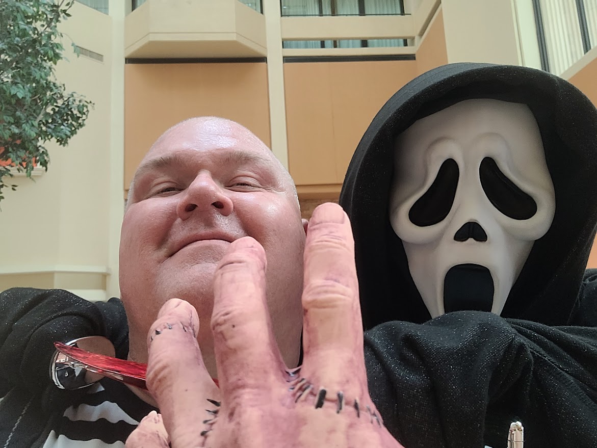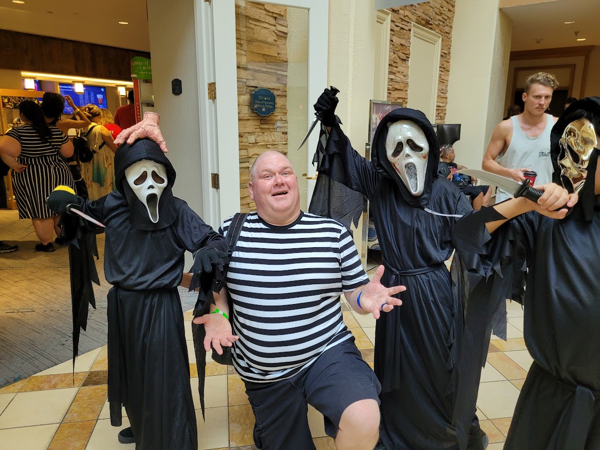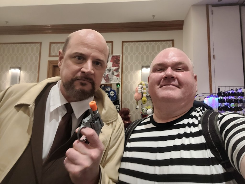 Day Two was all about having fun. I slapped on my Pugsley costume and headed to the event. I debated on getting a couple of more autographs but ultimately decided to hold off because I wanted to roam around and check out a few films, visit with friends, and maybe take a few photos. I did all of this in spades on Saturday. I had an amazing time. I made more vendor purchases, won a free ticket to Purgatory Scream Park, and was even asked by Lee Waddell to take a selfie with him in my Pugsley costume. I must admit that a few people called me Uncle Fester and one person called me Wednesday! It was still a lot of fun to take photos with people. I will most likely bring Puglsey (and Thing) back with me next year.