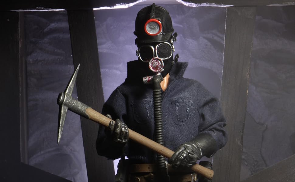 Harry Warden was portrayed by Peter Cowper in the original film. Neil Affleck portrayed the murderous Axel. Rich Walters portrayed Harry in the remake and Jensen Ackles played the wicked Tom Hanniger. The Miner was immortalized by NECA when that company released an action figure of the character in 2021.