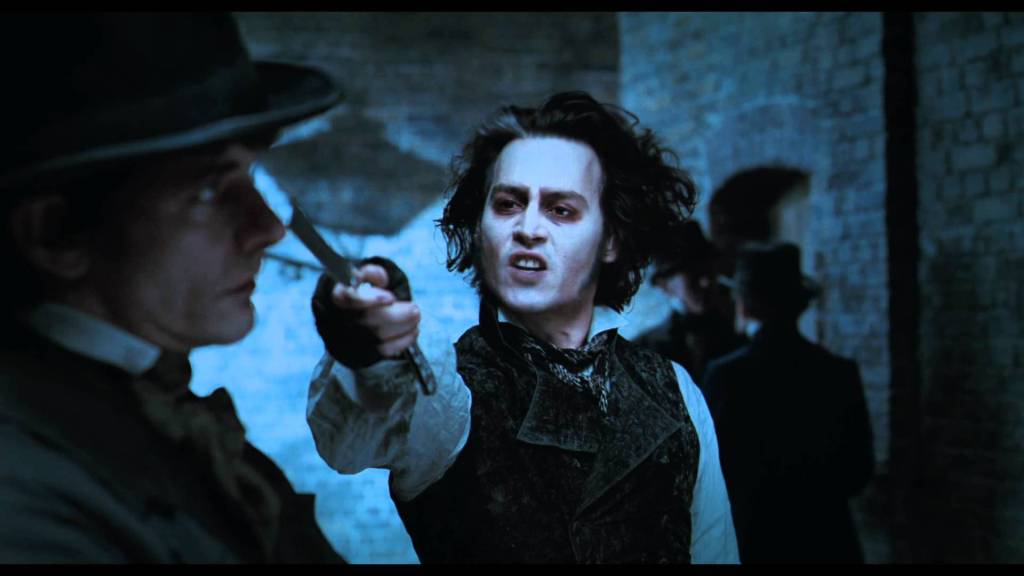 Portrayed by Johnny Depp, Sweeney Todd is actually the alias of Benjamin Barker, a barber who is framed for a crime that he did not commit so that the local judge, Turpin (Alan Rickman), could steal his wife away from him. After serving time in Australia, Barker returns to London with revenge on his mind. Using the alias of Todd, Barker opens a new barbershop above Mrs. Lovett’s meat pie shop. Lovett (Helena Bonham Carter), hoping to win Sweeney Todd’s heart, helps him set up a barber’s chair with a trap door which allows him to dump his victims’ bodies into her kitchen where she grounds them into meat pies.
