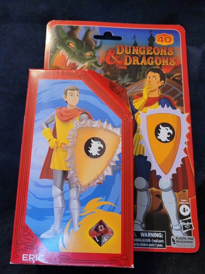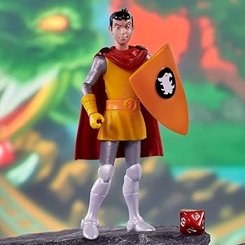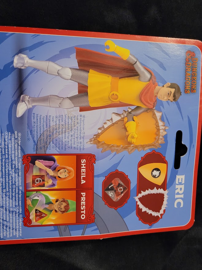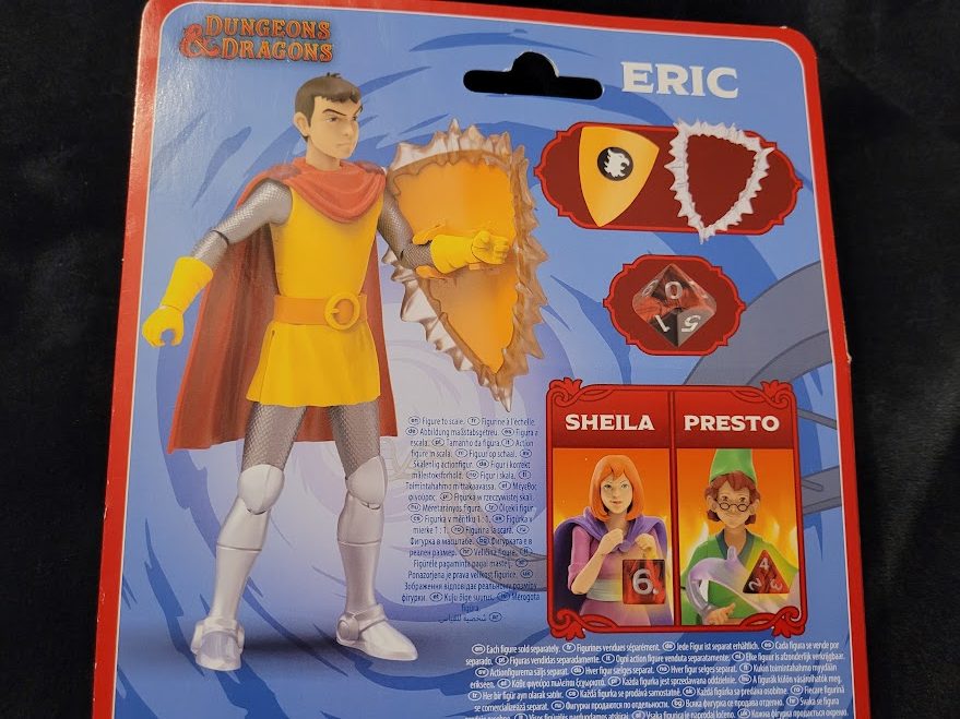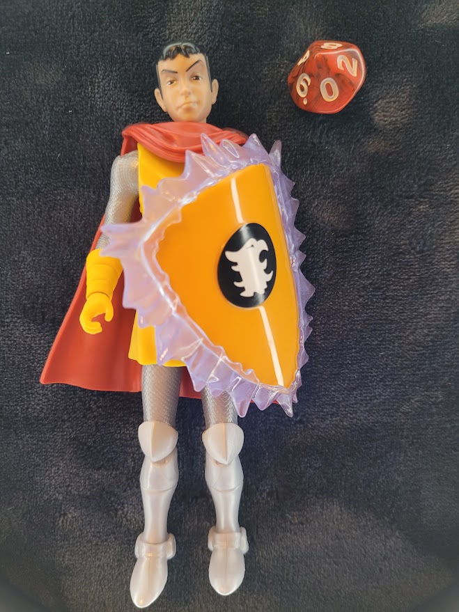 Like other figures in this line, Eric’s joints are extremely stiff. He features the same points of articulation and much like some of the other figures, he’s hindered at the hips by his clothing. He comes with his trademark shield with a removable force-field effect and a ten-sided die. The shield snaps securely to his arm.