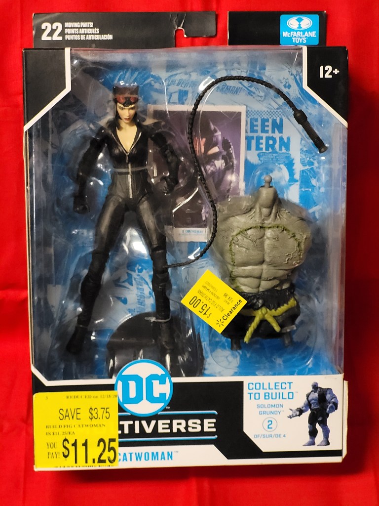 Released in 2022, the McFarlane Toys DC Multiverse Arkham City Build-A-Figure line was quickly on my radar. It came in two versions: a color version and a Walmart exclusive Gold Label black-and-white variant. I’ve put eyes on all four figures in the line, Batman, Catwoman, Penguin, and Ra’s Al Ghul, and after seeing them in person, the only one that I really liked was Catwoman. While I would love to collect all four of the figures to build the Solomon Grundy Build-A-Figure, I don’t want to pay full retail for the set. Luckily for me, I found Catwoman on clearance in northern Louisiana and had to scoop her up before someone else got her!