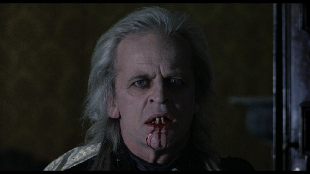 The movie gives us the story of Professor Catalano looking for the wicked Nosferatu some two hundred years after his last known appearance. He arrives in Venice at the request of Princess Helietta, who believes that the vampire is stowed away beneath her family home. So what’s one to do in order to see if ol’ Nosferatu is hanging out under their castle? Have a seance, of course, and unleash him on the poor people of Venice! Catalano and others attempt to stop Nosferatu as he begins to hunt those that are hunting him. He seduces Helietta, whips Catalano…….and then turns his attention to Helietta’s young sister, Maria, whom he claims can save him with her virginal love. Oh, and a lot of other goofy things happen as well. It’s all a big mess, but watch it for yourself and let me know what you think of the film.