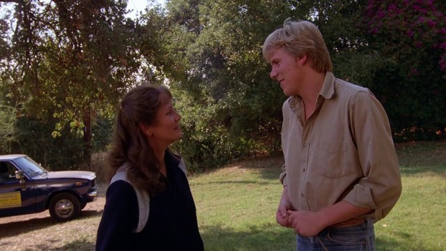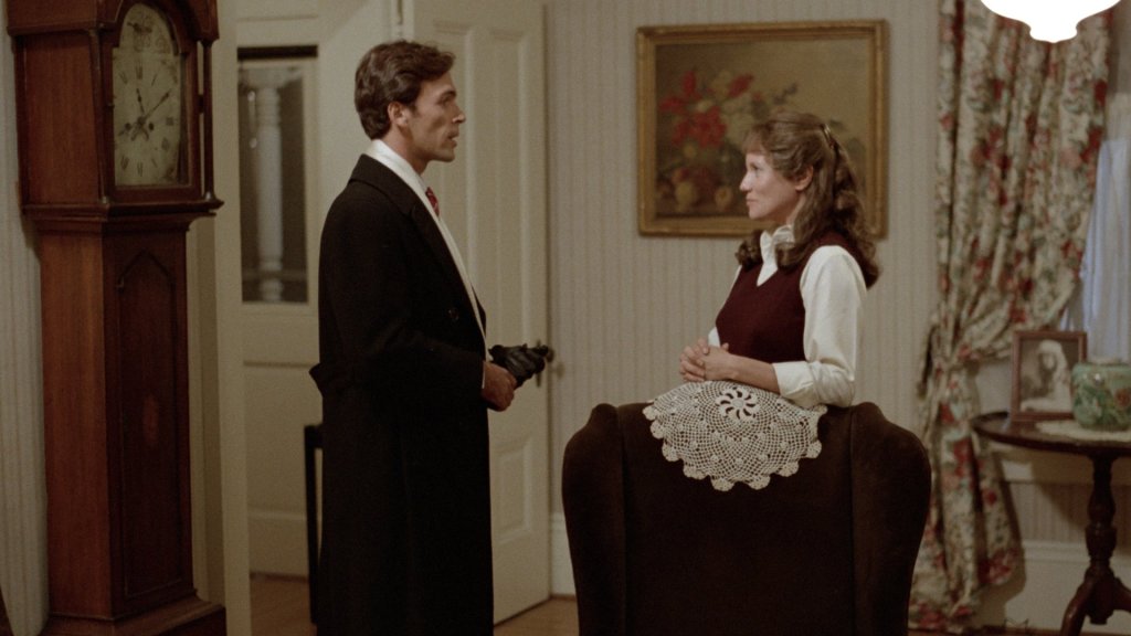 Trish Van Devere stars in the film as Jane. She is romanced by Tom Sullivan, portrayed by David Gautreaux. Perry Lang plays Paul, a young local who helps Jane around her home and is one of the few people that is actually friendly to her. He also has a crush on her. The rest of the cast includes Joseph Cotten as Walter Pritchard, a cranky attorney who thinks that he deserves Jane’s home more than she does, Donald Hotton as Reverend Winston, Med Flory as Sheriff Denton, and Donald Petrie as Luke. Also be on the lookout for Christopher McDonald as Pete, one of Paul’s friends, in his earliest credited role.