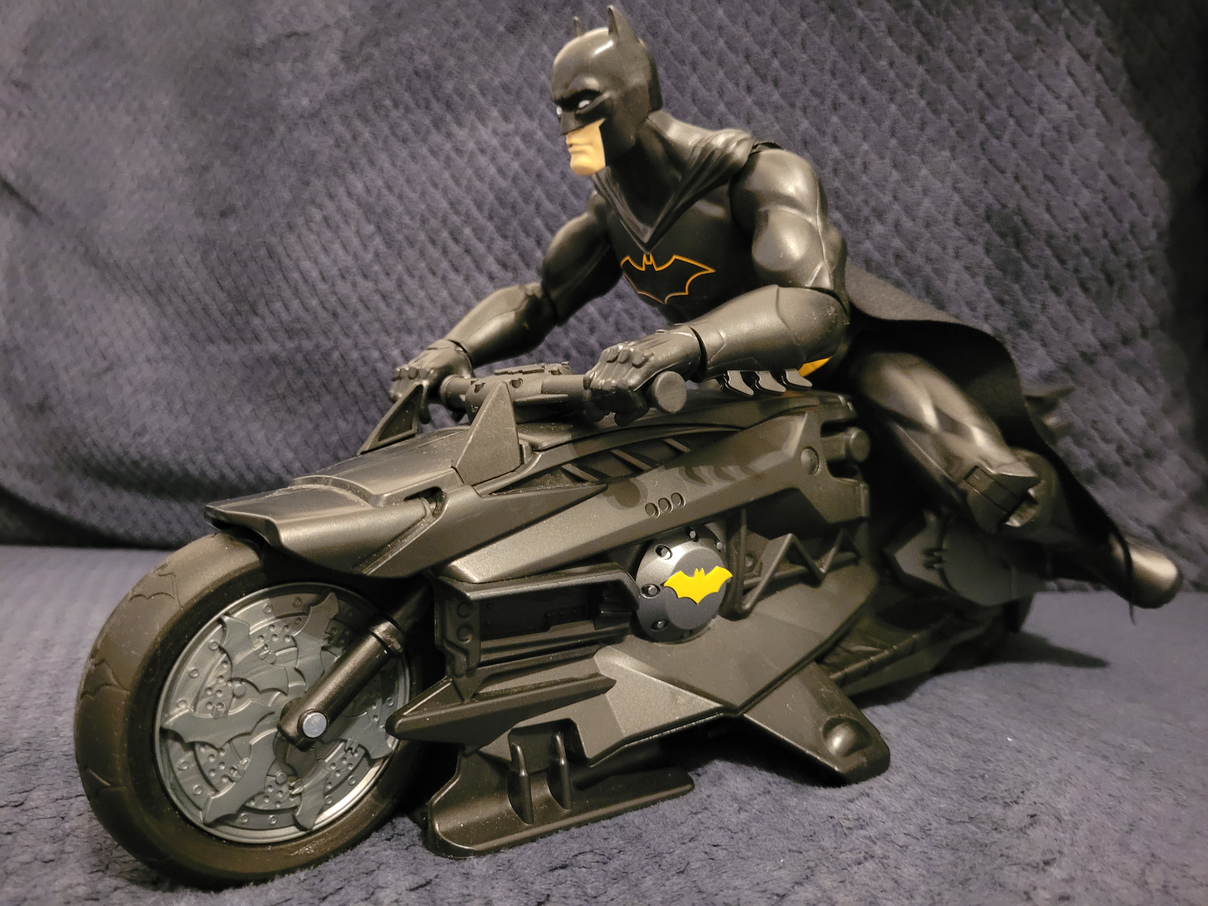 Yes, I ripped that quote from Teen Titans GO! To The Movies because that series is geared towards children (and adult-sized kids like myself) just like Spin Master’s Batcycle RC is aimed at the same demographic. This is a very simple RC motorcycle that fits the included 12″ Batman figure. It’s pretty cool-looking as well. It is the perfect gift for a youngster or a Batman enthusiast of any age.