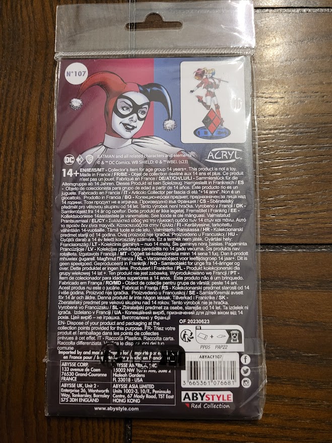 I’m not very familiar with ABYstyle, but they appear to have been around for quite some time. Most of the items on their website appear to be anime related, so my readers that are fans of anime might be familiar with this company. What I do know about ABYstyle is that they make a pretty awesome Harley Quinn Acryl Stand Model.