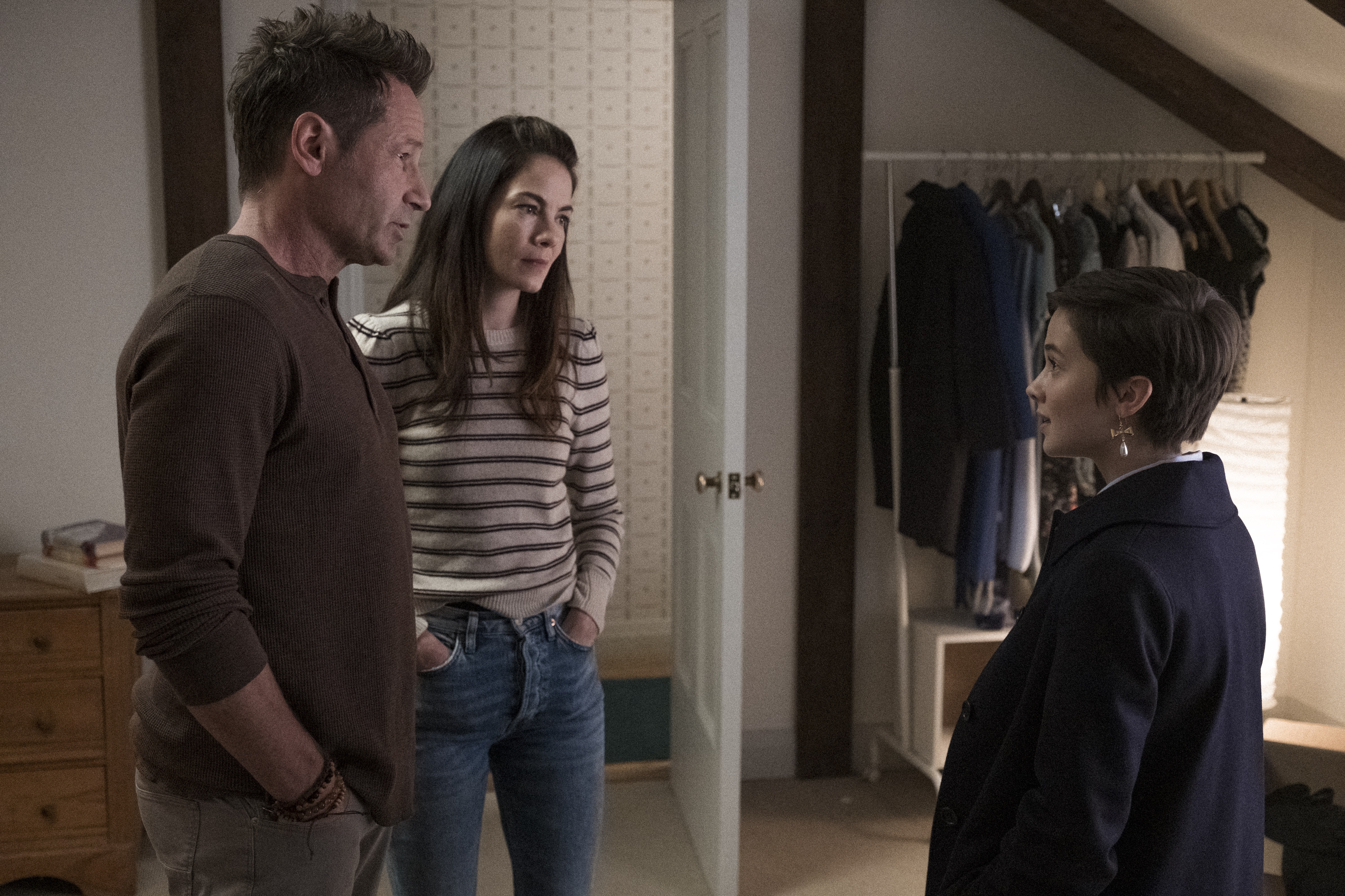 The main witch in the film is Lily “Lilith” Schechner. She is portrayed by Cailee Spaeny. Lily and her mother, Helen (Michelle Monaghan), are moving in with Helen’s new boyfriend, Adam (David Duchovny), and his three sons, Jacob, Isaiah, and Abe (Charles Vandervaart, Donald MacLean, Jr., and Julian Gray). Lily’s story parallels the story of Sarah (Robin Tunney) from the original film. Spaeny reminded me a lot of Tunney, and this might have been purposeful, as we get a surprise cameo at the end of the film. It’s not Tunney, by the way, but I won’t spoil it for you. When Lily arrives at her new school, she quickly becomes an outcast when she has her period in class and bleeds through her pants. Ostracized by her classmates and bullied by Timmy (Nicholas Galitzine), Lily quickly bonds with three other (much cooler than they should be) outsiders named Frankie (Gideon Adlon), Tabby (Lovie Simone), and Lourdes (Zoey Luna). Those three girls also happen to be witches and Lily is the fourth sister that they’ve been needing to reach their full potential.