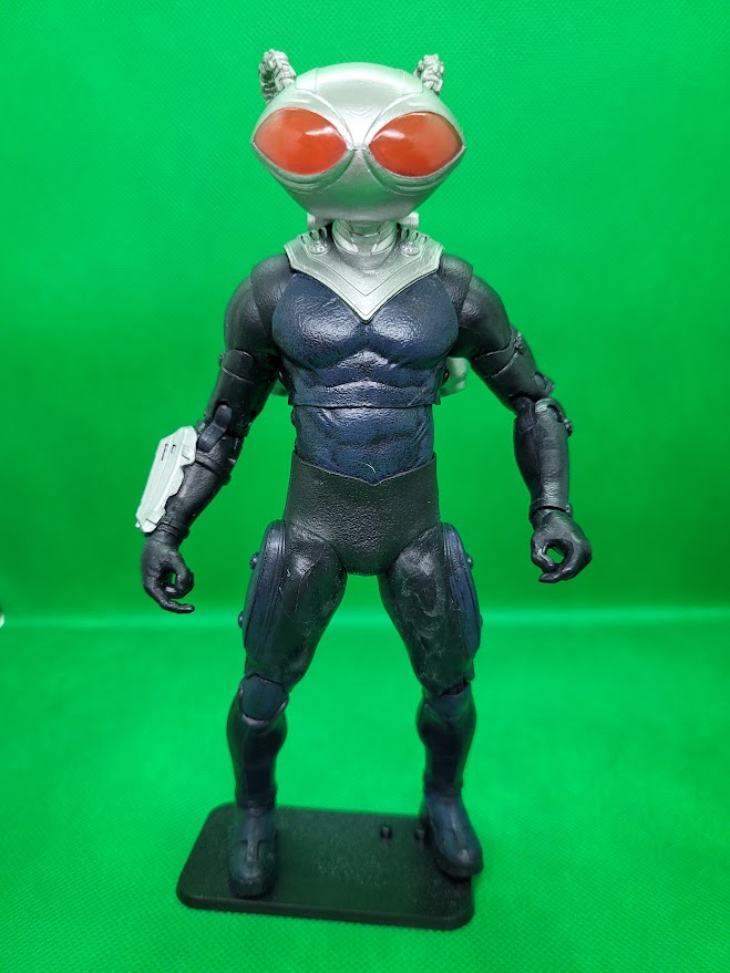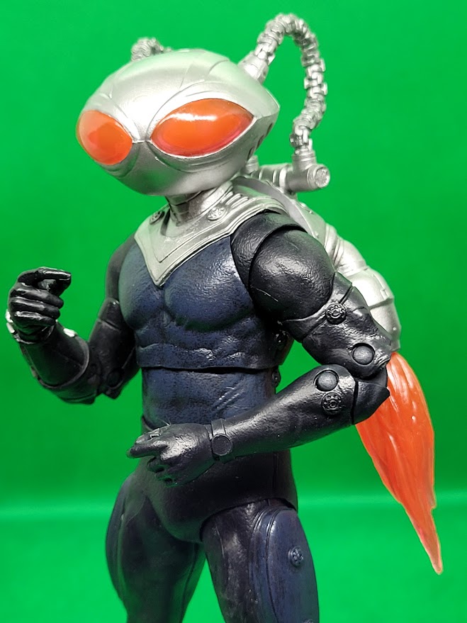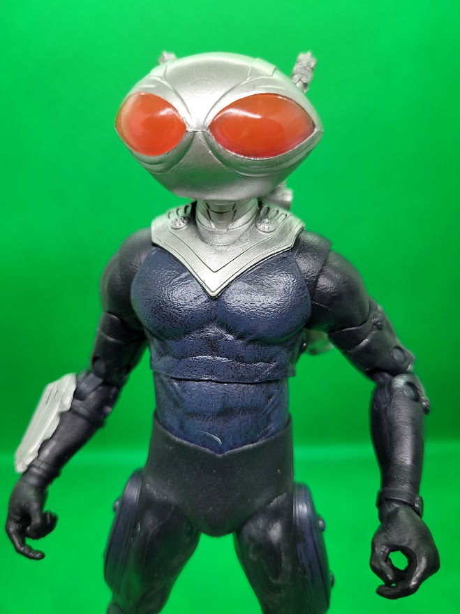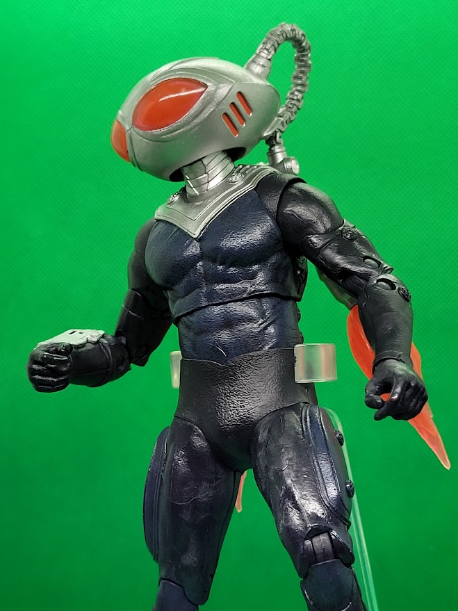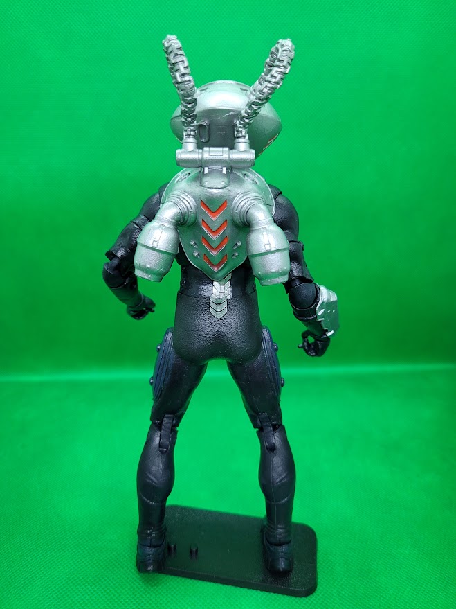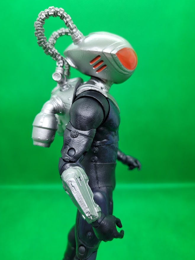 The figure is a very good representation of Black Manta from the film. His helmet is not removable. The tubes on his helmet are connected to the pack on his back. Unlike the Aquaman figure from the same line, Manta’s movement is hindered at the hips due to his suit. The tubes on the helmet also limit Manta’s head from moving very much. Other than those two issues, the figure is very cool.