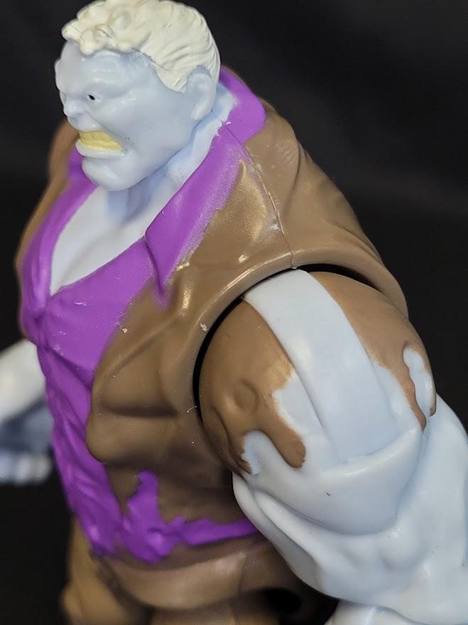 The Grundy figure mold looks great and the overall paint is pretty decent. However, one massive miscue is the fact that Spin Master left the shoulder hinge light blue (Grundy’s skin color) where his sleeve should be and it looks terrible. I’d even say that kids might be turned off by this poor paint application. This isn’t anything new for Spin Master, as they’ve done the same thing with variants of Mr. Freeze. There was also a splotch of paint on one of Grundy’s heels. Considering the fact that the price for these figures has gone up nearly two bucks, I’d think that Spin Master might take a little more time with their paint apps.